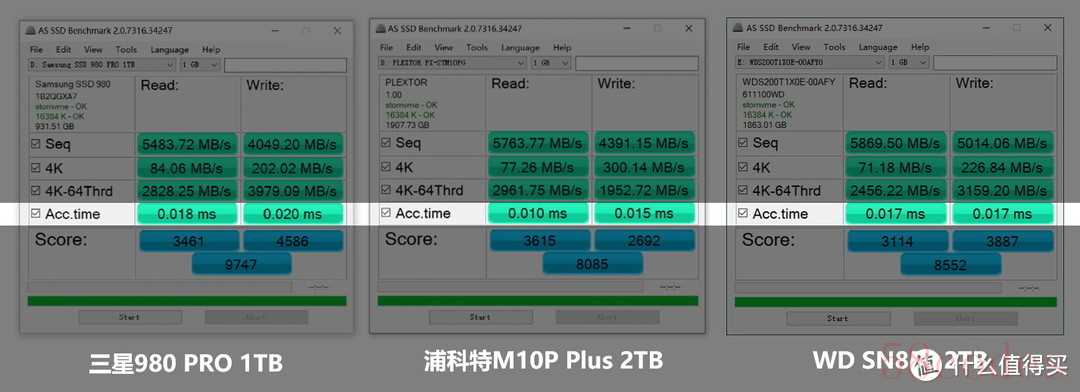 在功耗温度控制方面也比980Pro和SN850稍好。价格方面京东活动时候1TB是999, 拼多多甚至有900不到的,这样的价格我们给予十分推荐评级。浦科特M10P的具体评测可以参看低延迟为王 PCIe4.0新旗舰 浦科特M10P SSD评测报告。