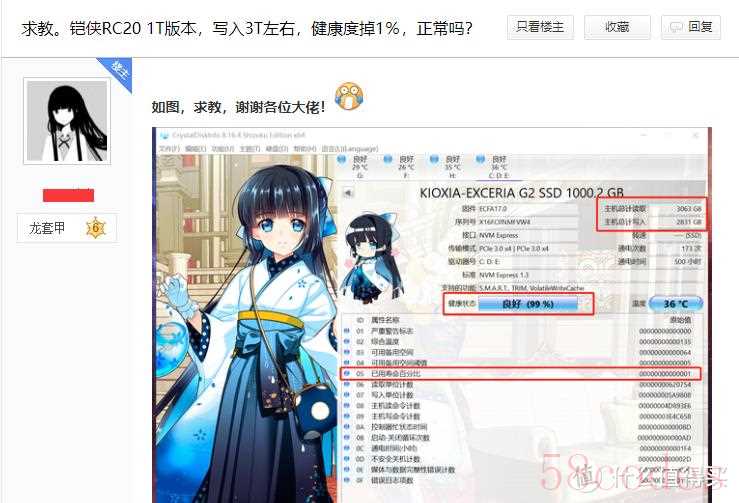 RC20主要缺点是写入寿命稍低,健康度掉的比较快,虽然这样的TBW也够用,但看着健康度一个点一个点的往下掉也很让人不爽,但考虑到价格还是给与极度推荐评级,推荐给使用比较轻度并对预算比较敏感的用户。