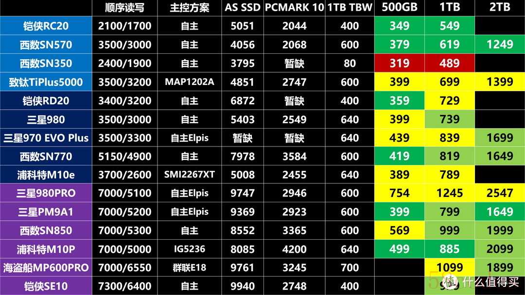 价格方面是统计是淘宝/京东/拼多多渠道,可以正常买到非耍猴价,这样的价格对于消费者更有意义。虽然我给出的链接都是京东自营,SSD的一线品牌如三星/浦科特都支持无票据凭序列号申请售后,因此没必要一定要京东自营,可以在淘宝/拼多多的正规店铺买,当然咸鱼一般还是不推荐。