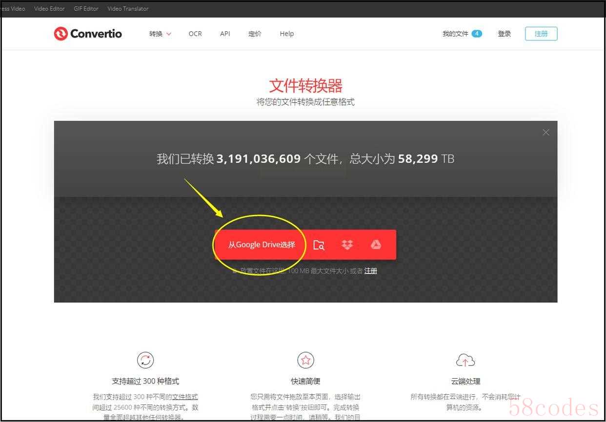 步骤一:打开浏览器,进入Convertio网站,点击页面上的“选择文件”按钮上传Word文档。