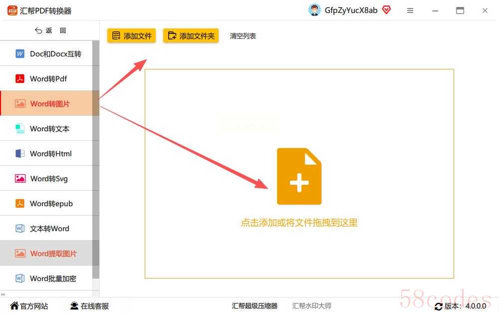 步骤二:进入后,先在左侧选“Word转图片”,再点击右侧“添加文件”按钮上传Word文档。这个工具支持同时传多个文件,特别适合处理大批量转换。