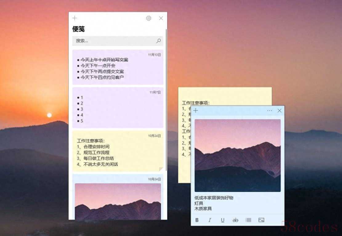 1、系统自带便笺Windows系统自带有便笺(sticky notes),打开即可使用,可记录简单的文字、图片,也可以列清单。但是不支持设置提醒时间,无法一直悬挂在桌面上显示,实时同步到手机端操作很麻烦。仅在电脑上简单记事,用它足够了!