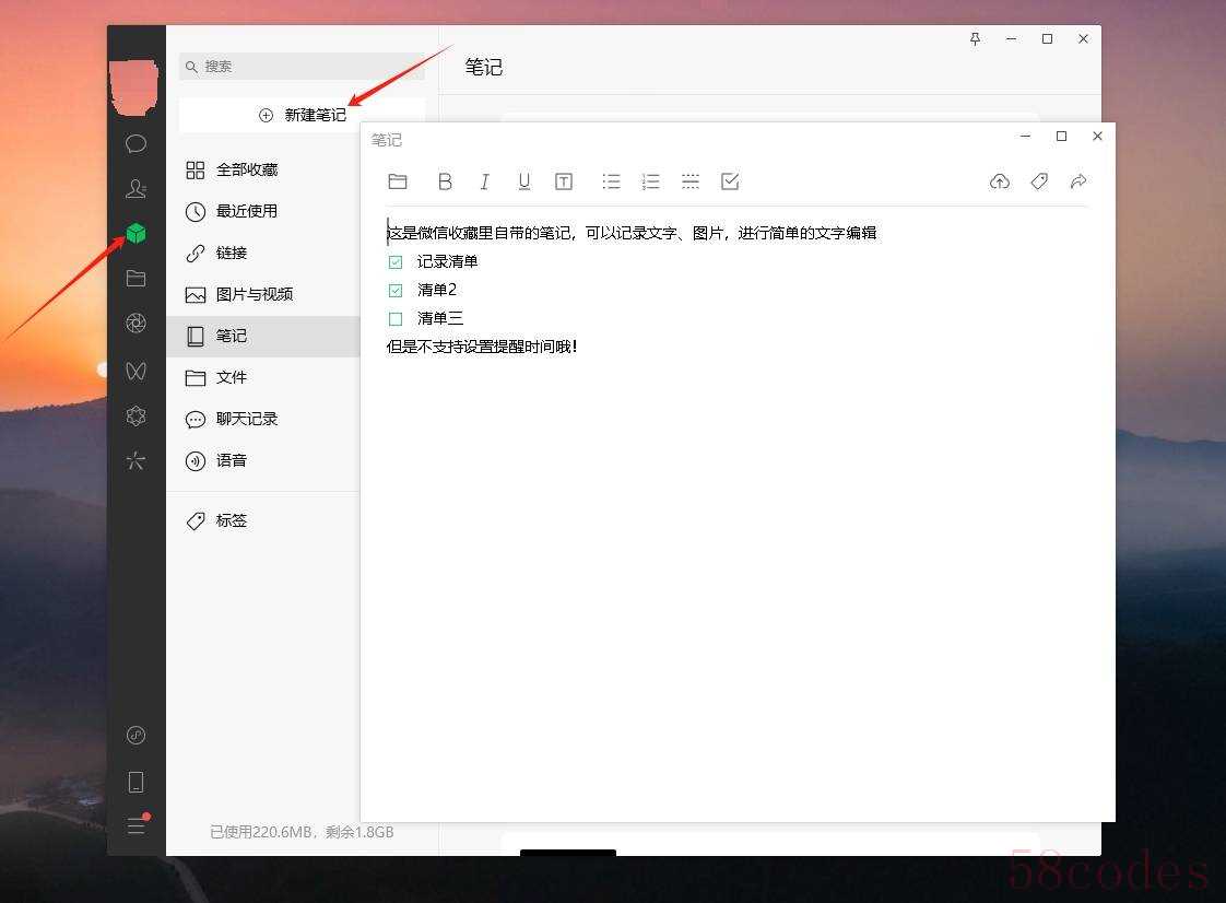 4、小绿书收藏里的笔记大多数的打工人都会在电脑和手机上同步使用小绿书,其实它的收藏里面,可以添加笔记,记录图文、清单等信息,也可以实现多端同步。但是它不支持设置日期提醒、重复提醒等,也有一定的数据丢失概率(之前有朋友反映过此问题)。