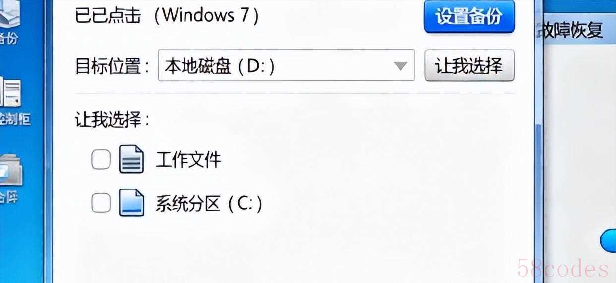 选择“设置备份”,选择要备份的文件和文件夹,以及备份目标位置(外部硬盘、网络位置等)。