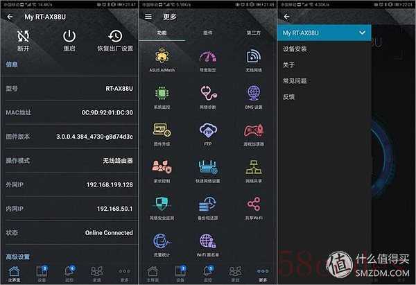 除了WEB端设定,华硕RT-AX88U电竞路由还提供了移动端APP应用——ASUS Router,需要对路由器进行管理时,可以不用开电脑了,这本身也照顾到了大部分用户的使用习惯,毕竟办公、娱乐已经很大程度上不依赖电脑,而是在手机上可以进行了。