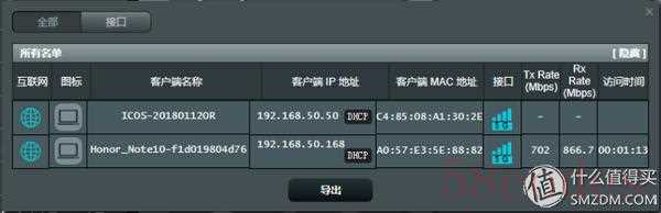 已连接设备列表,可对单一设备进行联网限制、带宽限速等,具有WEB端的家长控制功能。