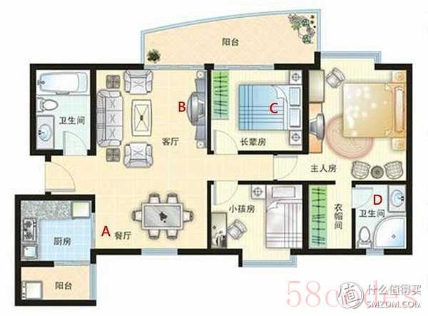 实际上体验如何?下面结合住宅实测一下。附上家里户型图,路由器放置在客厅B点。