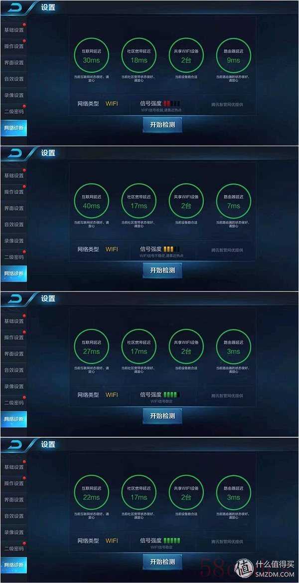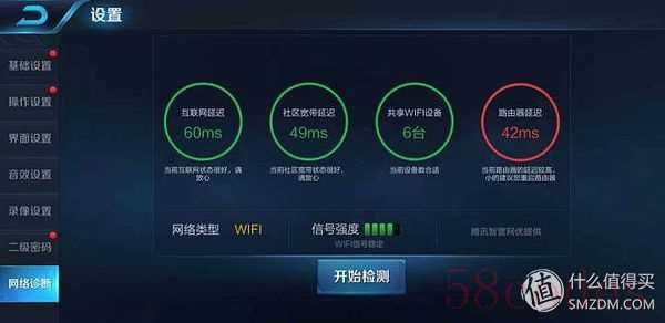 结合王者荣耀内置的网络诊断来说,楼主拿着手机在A点、C点、D点游走,信号强度分别在5格、4格、3格、2格时进行测试,在最差2格信号的情况,路由器延迟为9ms、互联网延迟为30ms,游戏的联网状态可以说是很理想了,游戏中基本不会有明显的卡顿。