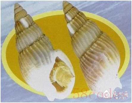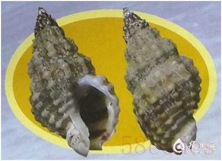 西格织纹螺:贝壳呈长卵圆形的大型织纹螺,壳质较坚硬,壳高20毫米-30毫米,壳宽10毫米-18毫米。壳表黄白色,壳面的每个螺层上均匀地分布着比较发达的纵肋和细弱的螺旋纹。栖息在潮下带至数十米深的泥沙质海底,已有季节性有毒报道。