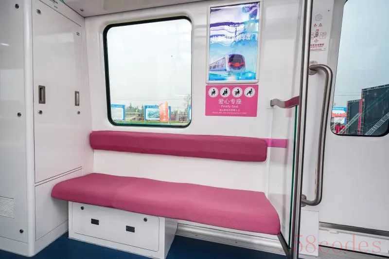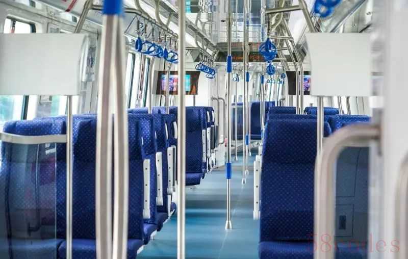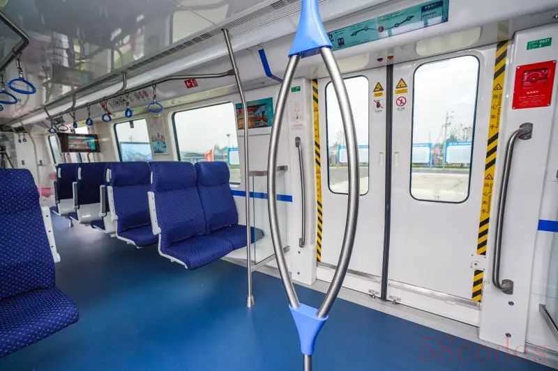 记者跟随工作人员走进首列电客车,列车内饰以白色为主,扶手杆造型曲直结合,与海宁钱塘江潮遥相呼应。蓝色软包座椅为主,粉红色爱心座椅为辅,为乘客营造一个舒适、和谐、文明的交通环境。列车每节车厢均设有6对电动塞拉门车门,全列共有24对门,车门上方智能、动态的LCD动态电子地图可以为乘客提供准确实时的站点信息,而客室侧墙和屏风上的LCD屏幕,还能让乘客及时了解到海宁人文、时事新闻、天气预报等丰富的信息。