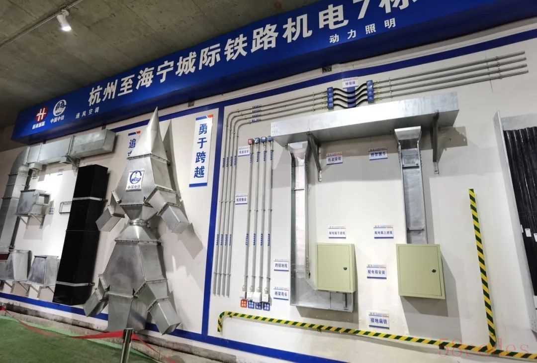 在盐官车辆基地的通信和信号机房内,施工人员正在按照工艺要求敷设走线并在机柜上张贴二维码标识,便于“一键”了解机柜参数功能;在皮革城站的机电安装工艺样板墙面,展示着杭海城际铁路通风与空调系统、动力照明系统、给排水与消防系统的施工工序样板,“标准化”深入建设的每一环节;在杭海城铁BIM室内,工作人员们正在通过“天眼”监测各个施工标段,做到土建、机电工程建模和已完工程数据可追溯。