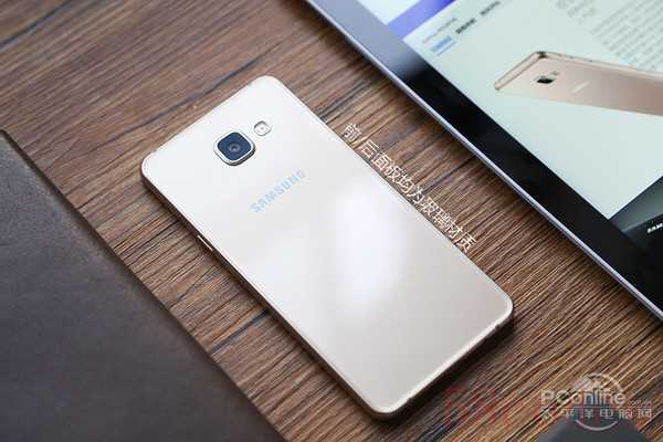 三星Galaxy A5采用与Galaxy S6系列相同的前后双面玻璃设计,机身三围尺寸为:144.8x71x7.3mm,整机较为袖长,而机身侧面材质依然为铝合金,表面经过磨砂工艺处理,看起来十分时尚。机身后壳同样覆盖一块2.5D弧面玻璃,主摄像头居中放置,1300万像素+OIS光学防抖可以满足用户的使用需求。
