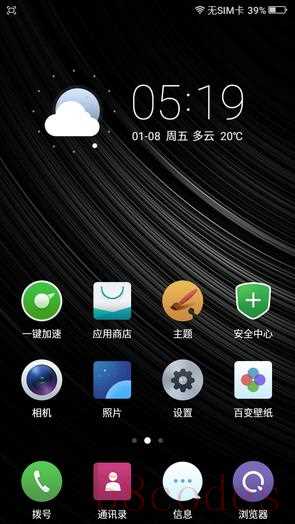 乐玩2C采用了经过轻度美化的Android 5.1系统,美化后更为扁平化与直观,使其更为符合国人的使用习惯。功能设置也非常全面,使用中较为流畅,没有出现卡顿的现象。锁屏界面中,所有的元素基本上都在屏幕底部,向上滑动可以进入桌面。桌面采用了一级菜单设计,图标全都经过了重绘,为圆弧方形设计,更加扁平化。通知栏采用了二段式设计,第一次下拉是通知中心,第二次下拉是控制中心。两者都没有使用纯色背景或者高斯模糊设计,而是选择降低透明度,在保证选项清晰的同时也不让界面过于单调。