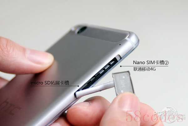 HTC X9正面的设计与早前的HTC Butterfly S有着较高的相似。既要去除多下巴的设计,同时保留BoomSound双扬声器,所以HTC最终采用了类似HTC蝴蝶系列机型的设计。5.5英寸1080P屏幕面板采用包边设计,侧面看该机的边框则由两部份组成,分别是金属机身延伸的边框和屏幕面板的抛光包边。电源键和音量键均设置在机身右则偏上方,而在机身右侧上方处也设置有一个Nano SIM卡槽。