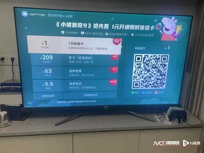 有佛山市民彭小姐告诉南都湾财社记者,她家里用的TCL电视,“少儿”栏目中都是家里小孩喜欢看的动画片,但是如果要观看,需要充值,而“少儿会员”年费就需要209元,“不然只能试看三分钟,而且还不能和其他栏目打通,只能看动画片,太坑了,看个电视,会员还要分种类。”