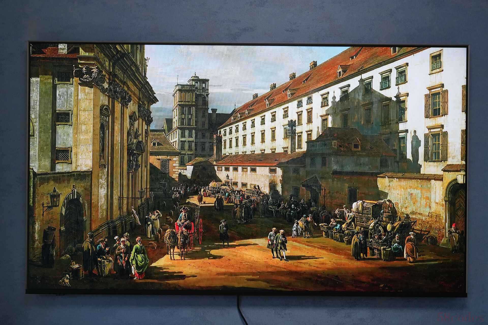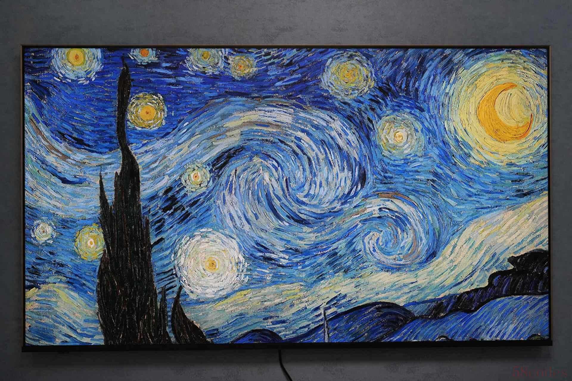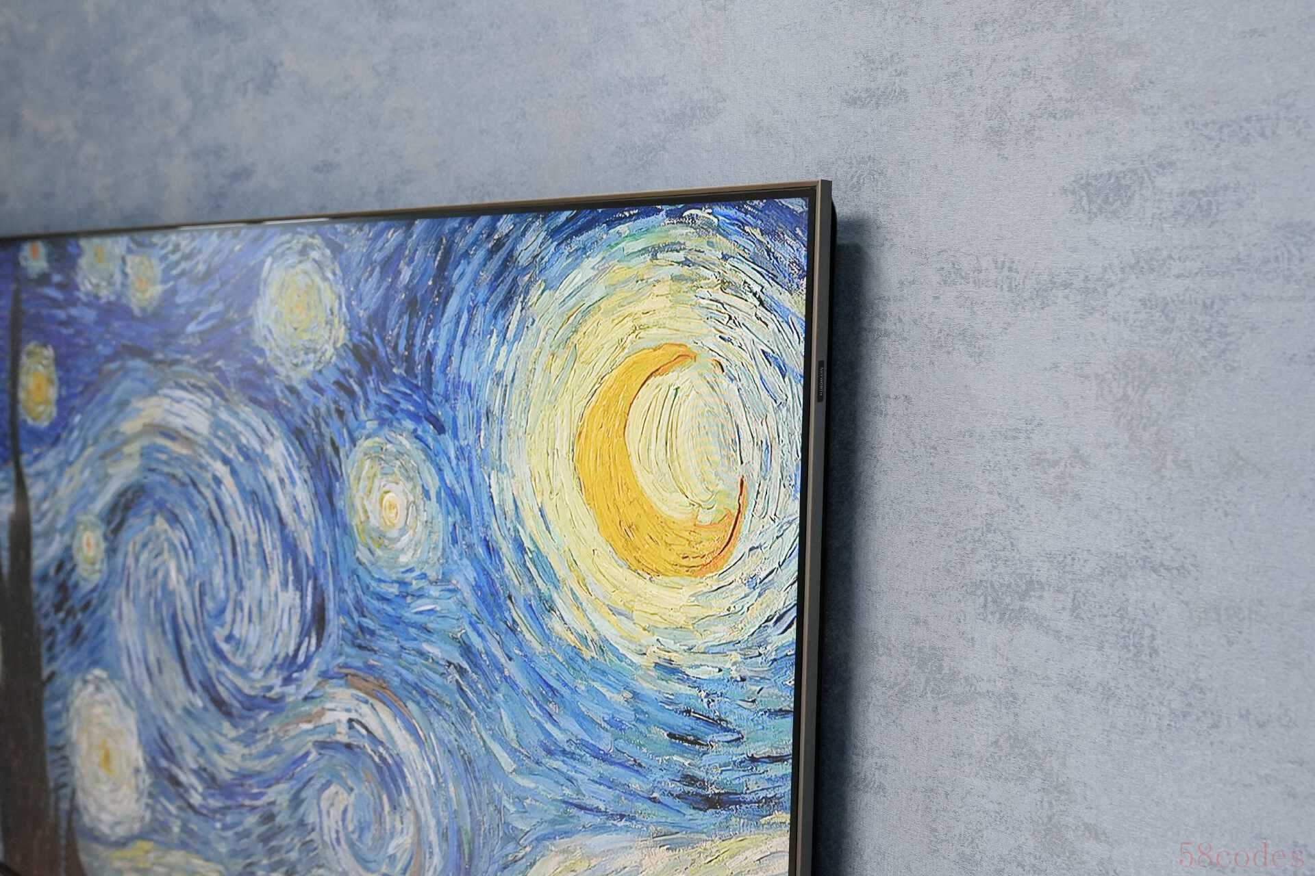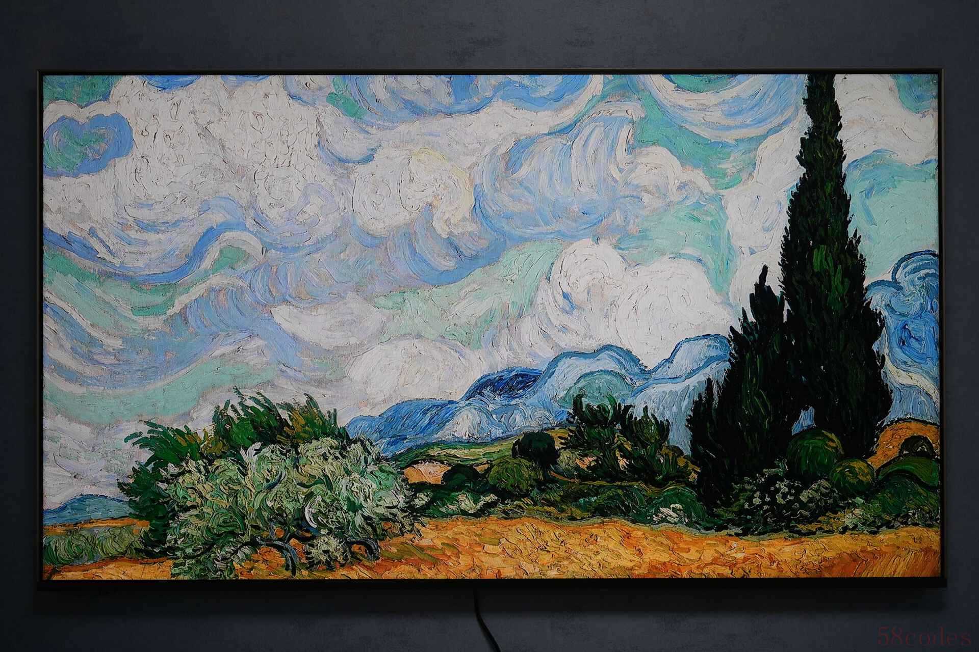 这一点在平时看电视时影响不大,但如果作为壁纸电视使用,在显示油画的时候屏幕出现这么严重的反光,用户是很容易「出戏」的——数码感太重,是壁纸电视的大忌。