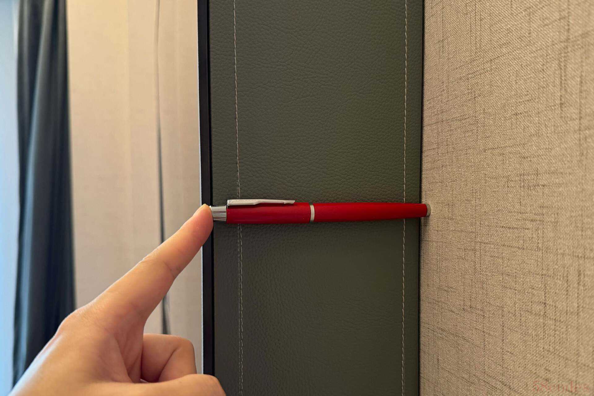 这是我住九点的时候拍摄的,电视采用了嵌入式安装,嵌入厚度跟一支签字笔相当 ▲