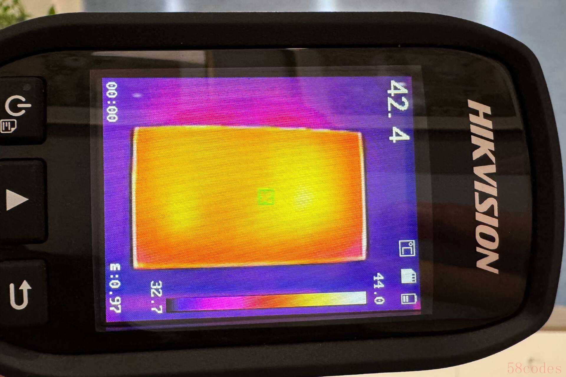 在一年中温度最高的 8月份,三十多度的室内温度,连续开机三天三夜,期间不开空调。最终用热成像仪实测电视机表面最高温度约 44℃ ▲