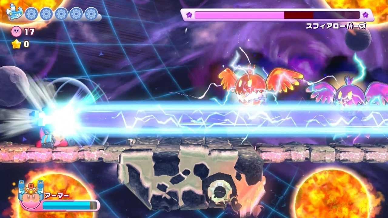 与复刻前有所不同的,本作登场了全新的装甲变身形态!从远距离释放的加农炮,到近身肉搏的机械重拳,还能使用喷气背包漂浮在空中(不用嘟嘟嘴鼓大泡了~)这真的不是“高达卡比”么。更强大的火力输出下,兄弟们绝对能体验到经典卡比系列的战斗爽快感。