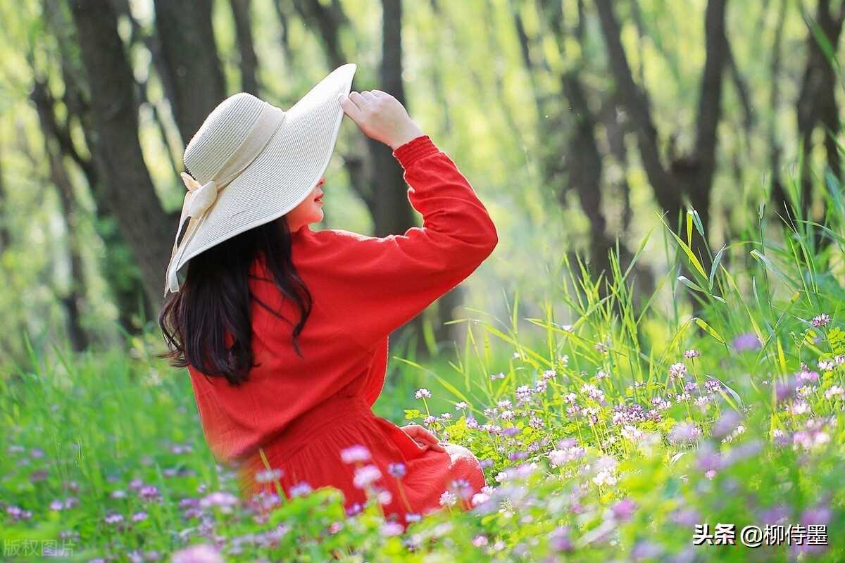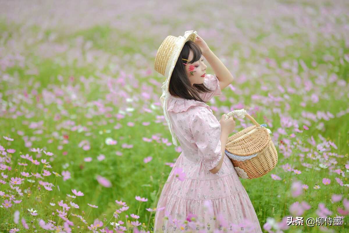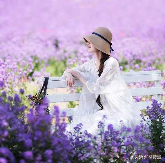 或者呢,就直接用一只手摁住帽子,单纯地拍摄花丛中的背影。参考示例图14。