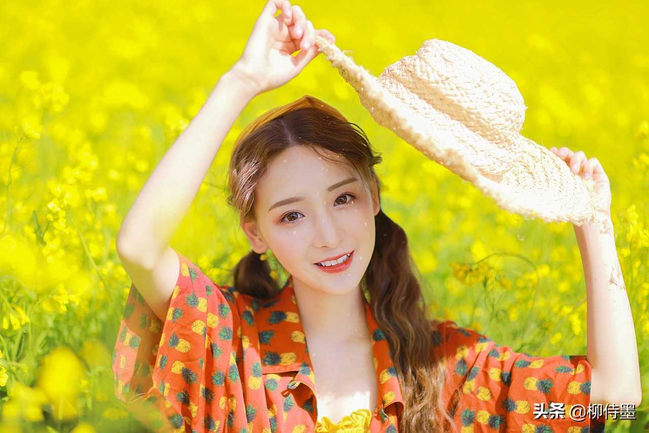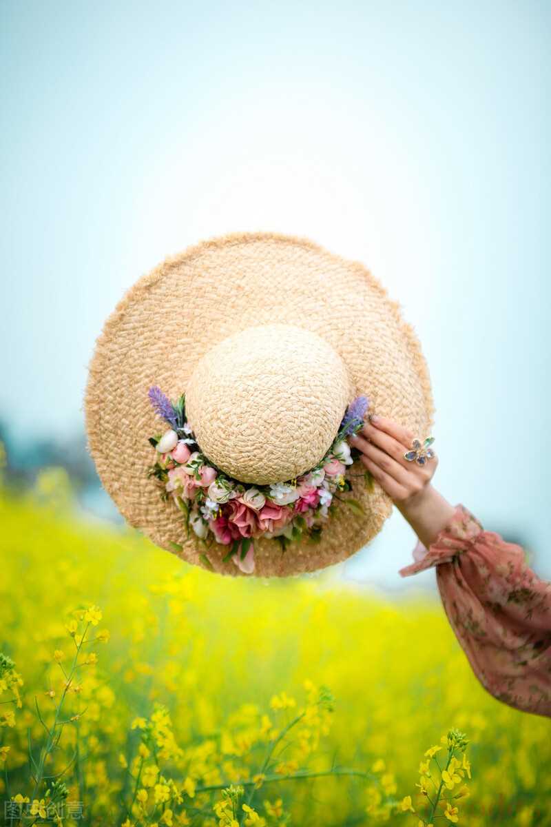利用帽子拍摄赏花的美照片,除了可以解决“无处安放的小手”,还可以缓解,模特因为看镜头而产生的紧张情绪。