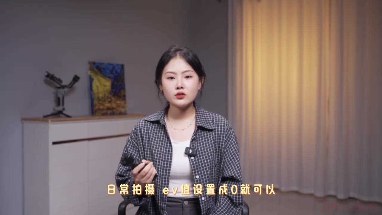 2. 然后左滑打开曝光页面,曝光设置成 m 档,把快门设置成 1/60,右边的 iso 设置成 50~1600。再点击左上角的 ey 值,日常拍摄 ev 值设置成 0 就可以。如果是 HLG 或者 DLOG,可以设置成 0.3 或者 0.7。