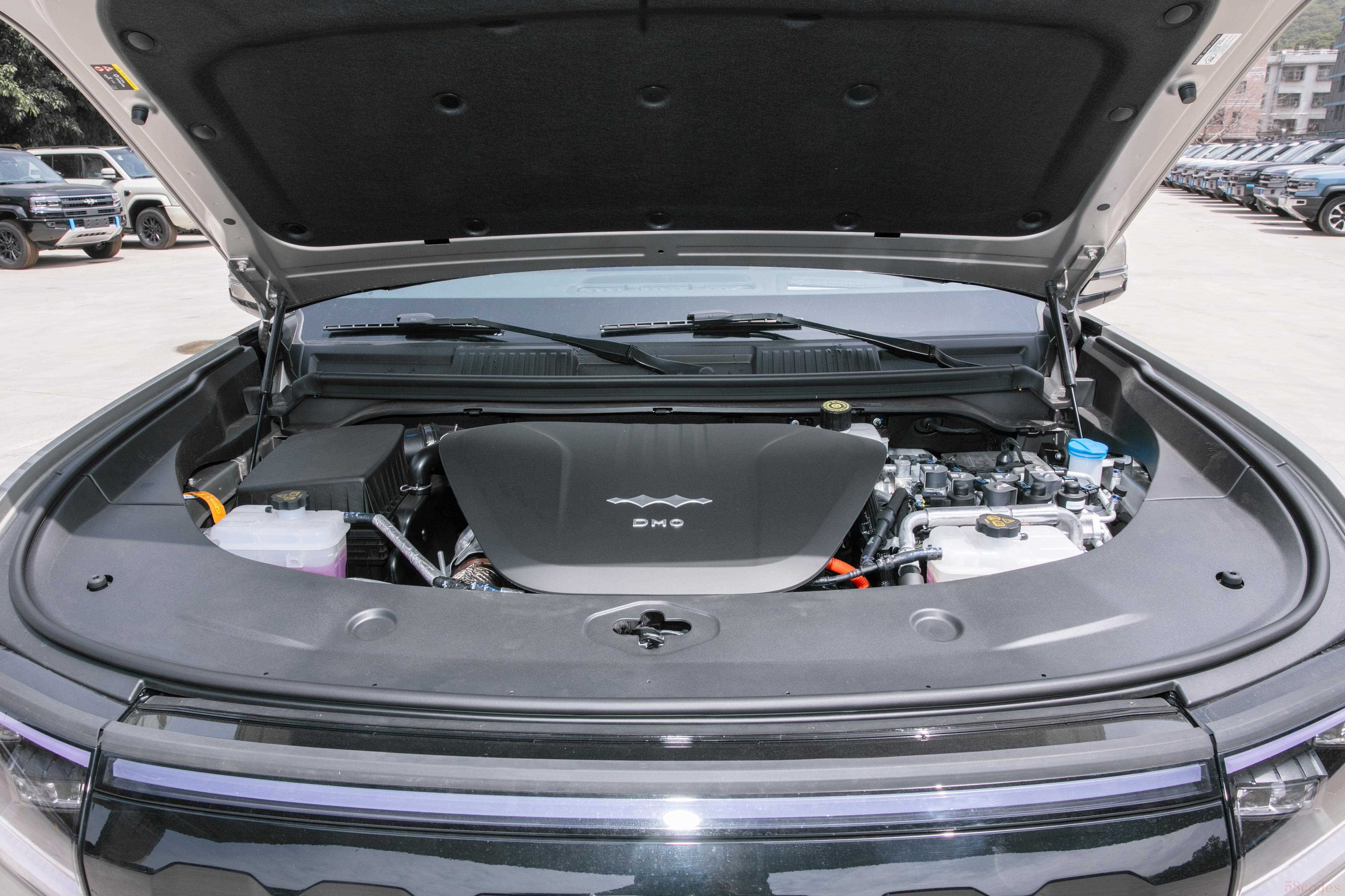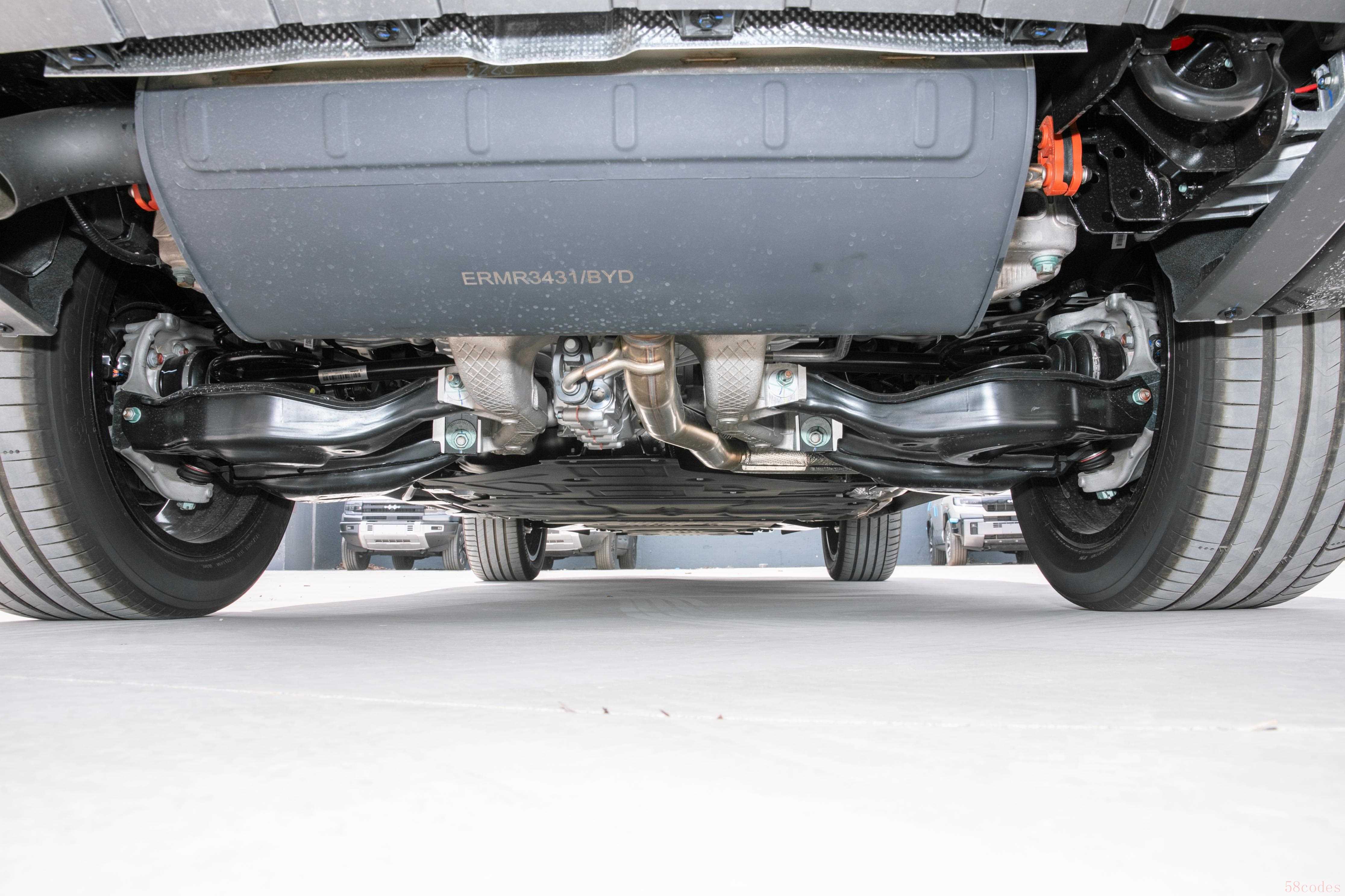 在试驾过程中能感受到,车辆在城市通勤时电机主导驱动,起步响应迅速,E-CVT无级变速箱换挡平顺,拥堵路段几乎无顿挫感,驾驶体验接近纯电车;高速场景下发动机与电机协同发力,高速超车游刃有余,馈电状态下仍能保持强劲推背感。前/后双叉臂结构提升非铺装路面通过性,配合高离地间隙,轻度越野场景(碎石路、沙地)通过性较好。搭载云辇-P液压悬架,支持悬架高度与阻尼调节,城市路况滤震效果优秀(如减速带、井盖),但高速过弯时侧倾较明显,车身姿态控制偏保守。同时搭载低速四驱+蠕行模式,车轮抓地力如八爪鱼吸附地面,脱困能力突出。