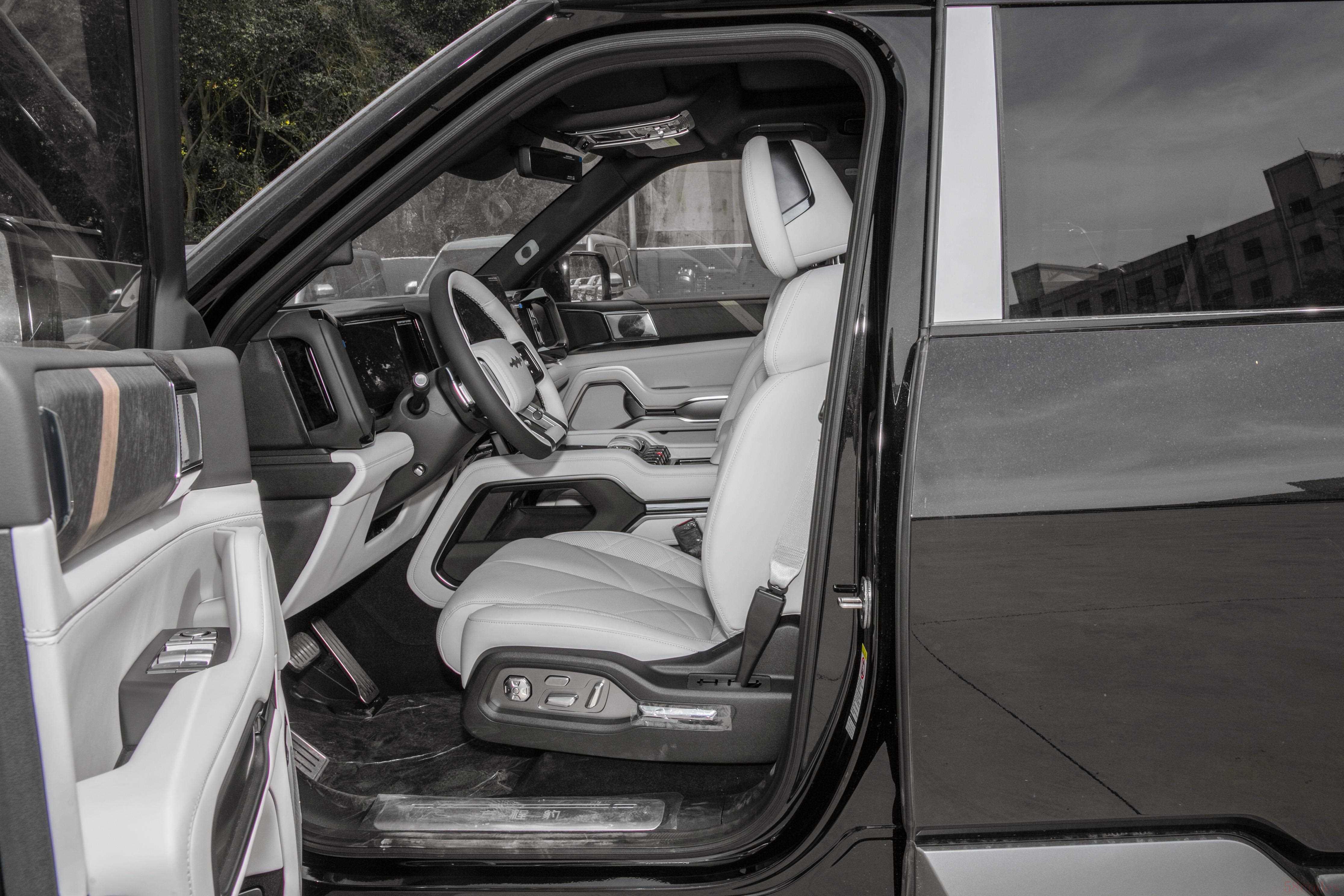内饰采用雪峰白主色调,搭配浅灰与银色饰板,营造纯净通透的“极简舱境”,视觉上拓展空间感,契合无人机版探索自然的定位。中控台与门板融入金属拉丝纹理,空调出风口采用“超级锁扣”机械设计,与外观硬派风格形成统一。中控台配备12.3英寸全液晶仪表+17.3英寸中控屏+12.3英寸副驾屏,主驾仪表支持全场景AR导航投影,副驾屏专供影音娱乐,中控屏集成华为HiCar互联与无人机控制界面。车机内置无人机起飞/降落、跟拍模式切换、航拍画面实时预览功能,操作逻辑接近手机APP,降低户外创作门槛。车顶4K摄像头与无人机镜头联动,支持一键生成多视角混剪视频,素材可直接导出至手机社交平台。座椅采用Nappa真皮材质包覆,触感细腻,前排座椅支持加热、通风、记忆、按摩功能,二排座椅支持加热、通风、按摩功能,提升了驾乘的舒适性。