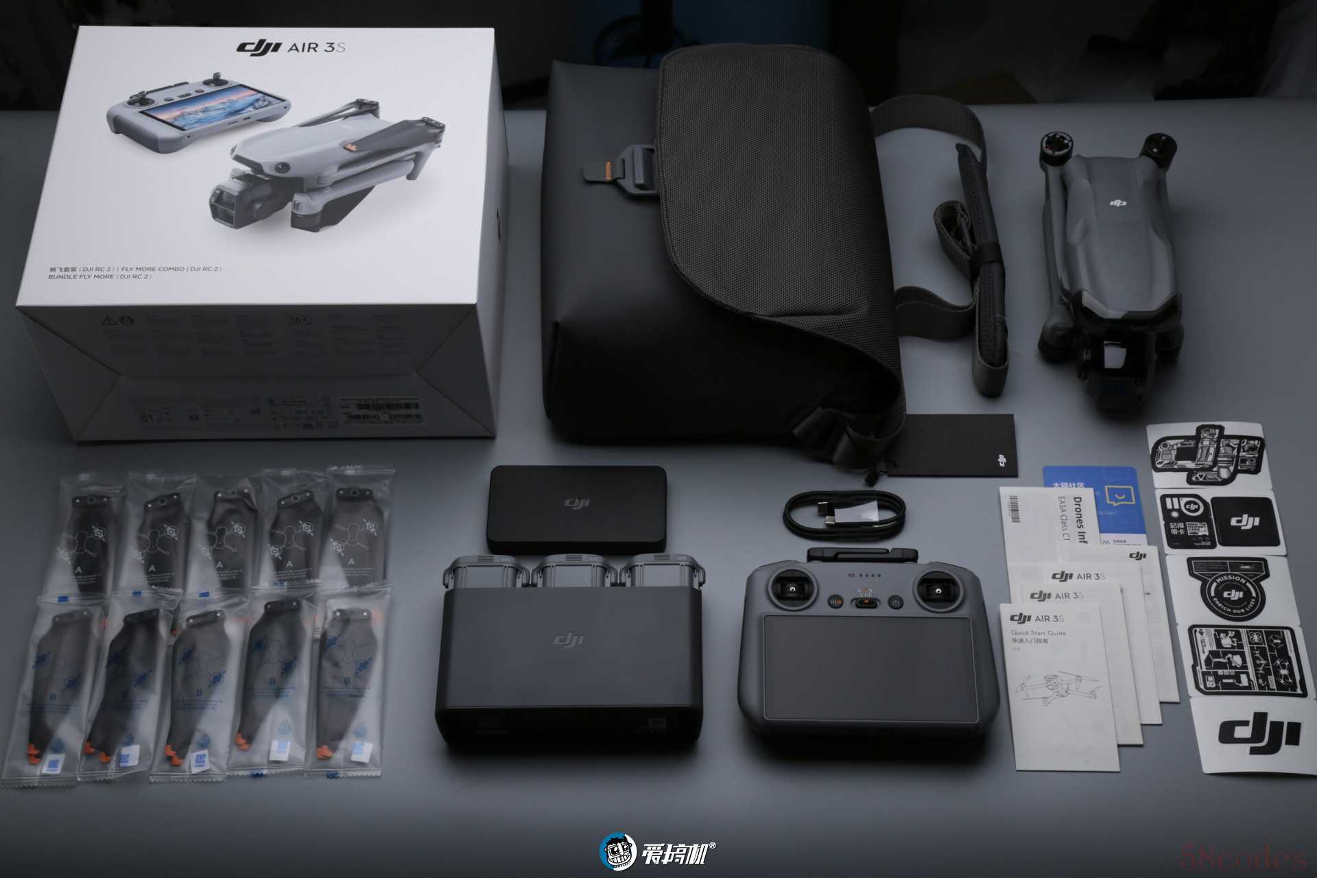 - 整备质量是mini系列的翻倍级别:247g x2的电池+171.4g的充电管家+724g的飞机+320的RC-N3无屏遥控=1709.4克 (RC 2带屏遥控还要再加100克)。以前用mini系列,用小包装飞机,连着遥控一起塞包里就行了,而用Air系列要多背一个小包。
