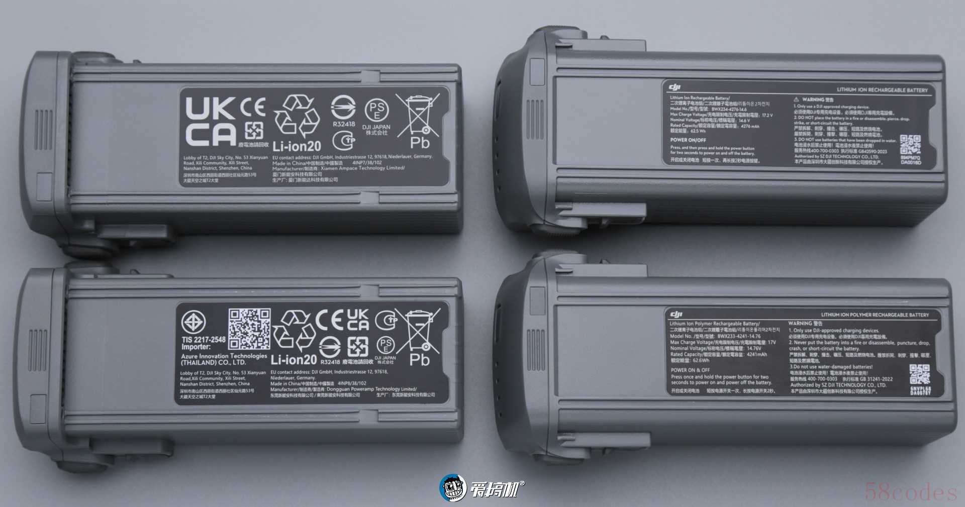 - 都是O3+图传(四天线,二发四收),77Wh电池(46分钟续航,Pro版43分钟);