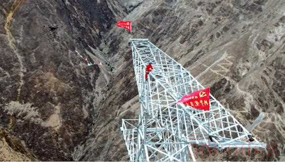 一般的电线铁塔都有30-60米的高度,有些特高压塔甚至高达百米,相当于城市50层楼高。电力巡线员需要先爬上这些铁塔,半小时后,在悬空的导线上专注作业4小时,甚至有时候连午饭都要在空中解决,这对于巡线员来说是一项风险极大的工作。