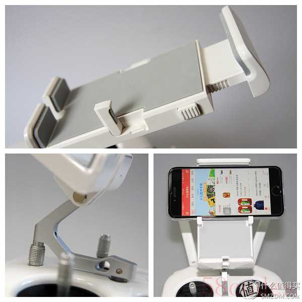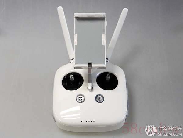 遥控器的外观和P3 Professional基本一样,对于P3 Standard用户来说这个用起来可是舒服多了。P3S的天线只有一根,手机支架的稳定性也不是很高,功能键也少。P4的这款遥控从手感到操控有显著提升。