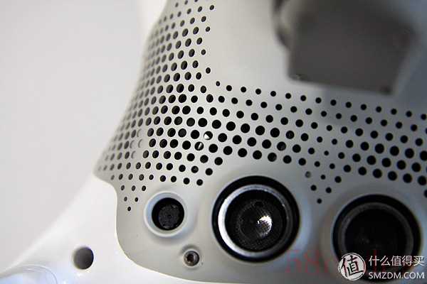 正面两侧的摄像头就是精灵4新引入的“前视障碍物感知系统”,左右两个摄像头模拟人眼进行障碍距离测量,从而实现飞行避障功能。避障能力的引入使得无人机具备了一定的思考能力,能大幅降低炸机的概率,尤其是在失控或图传丢失的情况下,P4的自动返航飞行更加安全。避障在新增加的视觉追踪功能中也可以发挥不小的作用,关于这一点在后面的测试环节会有演示。