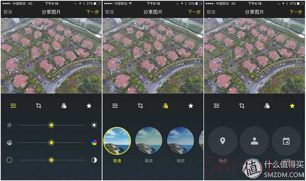 第二个功能区可以将视频和图片编辑后分享出去,上图就是图片的编辑界面,功能不多但是稍微玩过手机图片美化的同学一看就懂了。