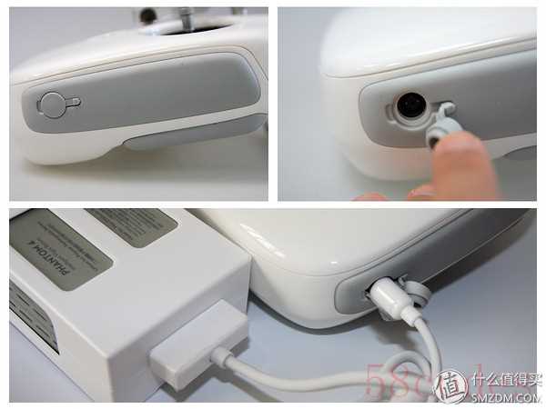 手柄两侧也有防滑胶,右边防尘塞打开后可以看到充电口,P4的充电线是双头的,可以同时充电池和遥控,P3S的则只能单独充电池,遥控需要连接电脑或者单独的充电头进行充电,P4充电更加方便。