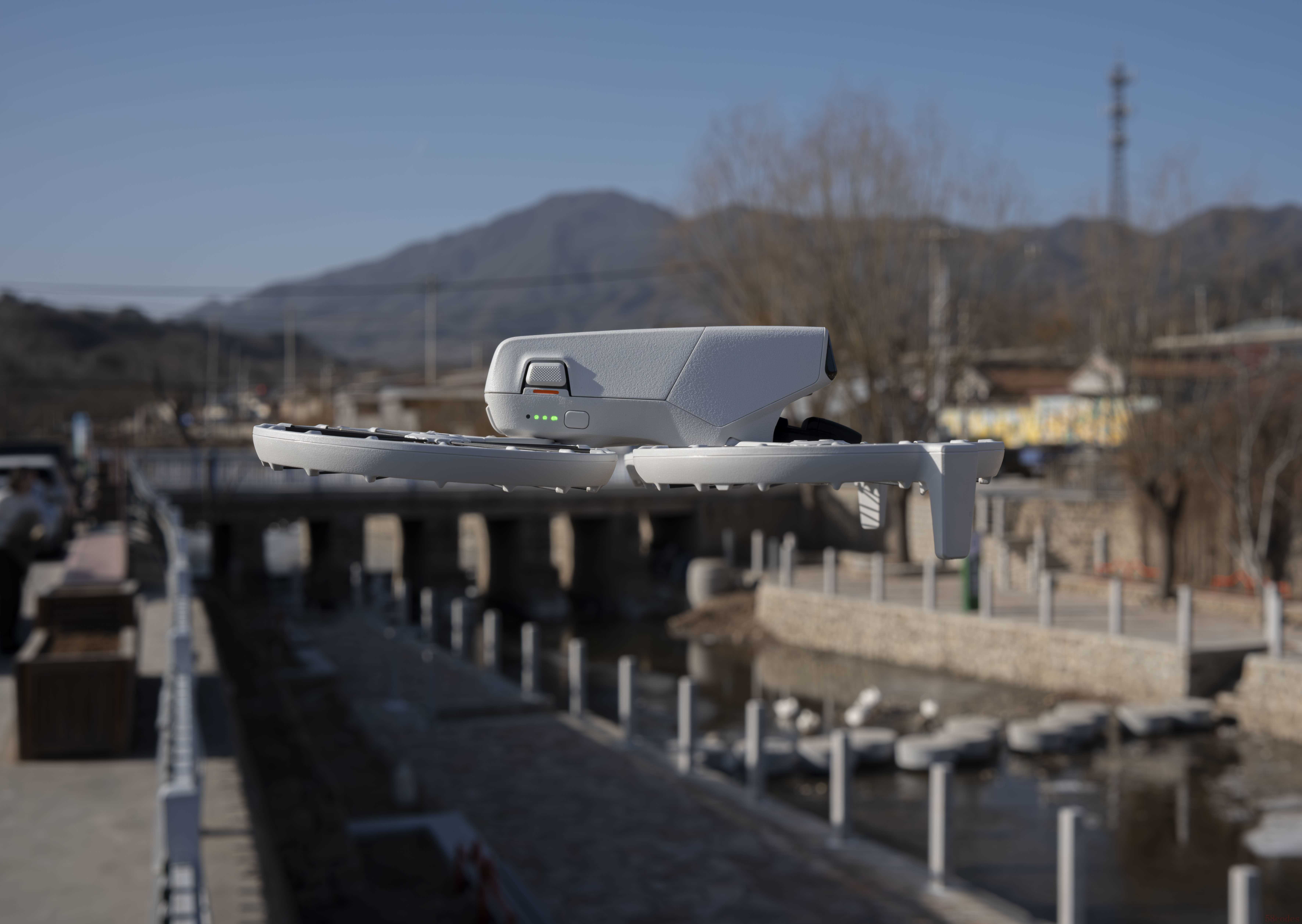DJI Flip 的第一眼印象就是小巧。它继承了 DJI Mini 系列的基因,重量仅为 249 克,体积也极为紧凑,可以轻松放入口袋。这种小巧的身材,打破了人们对无人机的传统认知,让无人机不再是大型的、需要精心呵护的设备,而是可以随身携带、随时随地使用的“小玩具”。