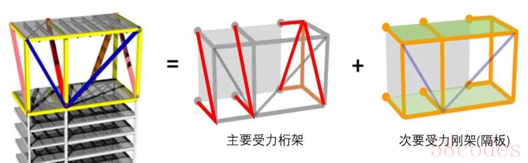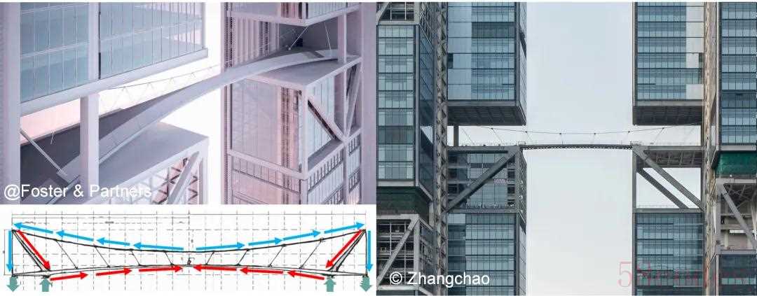 ▲ 悬挑箱体和刚架共同作用的设计理念示意图 © Arup