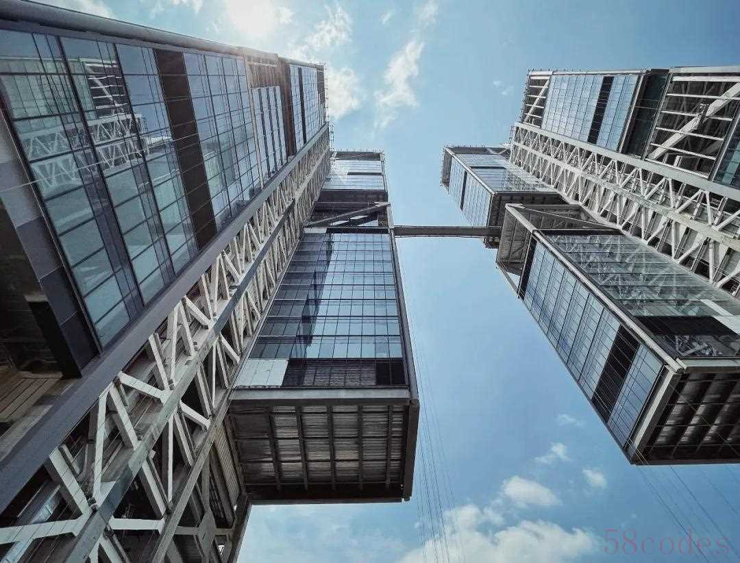 天空之城由东、西两栋分别高212米和190米的超高层塔楼组成。每栋楼都盘旋外挂了6个悬挂体,与塔楼高低错落配合,像科幻小说里的飞行器,又像虚拟世界相互链接的区链空间,给人别样的悬浮感和未来感。