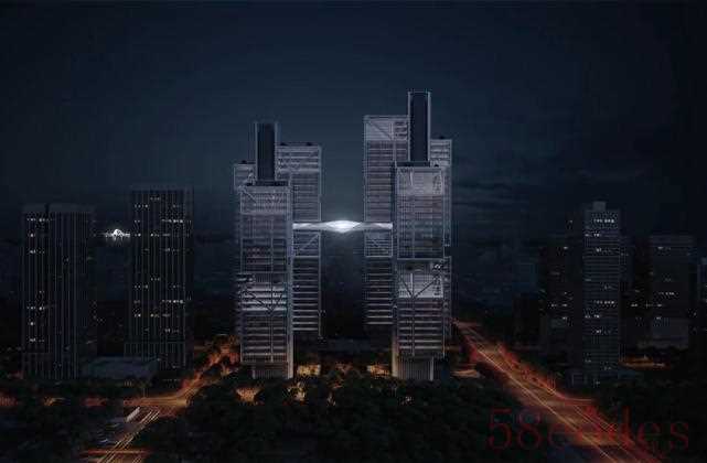 6个“悬挑方体”和连桥设计,使大厦极具魔幻效果。