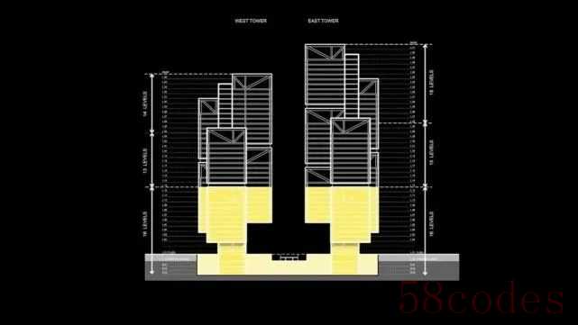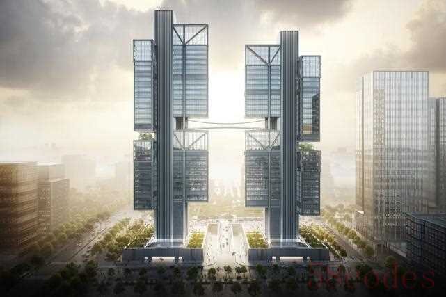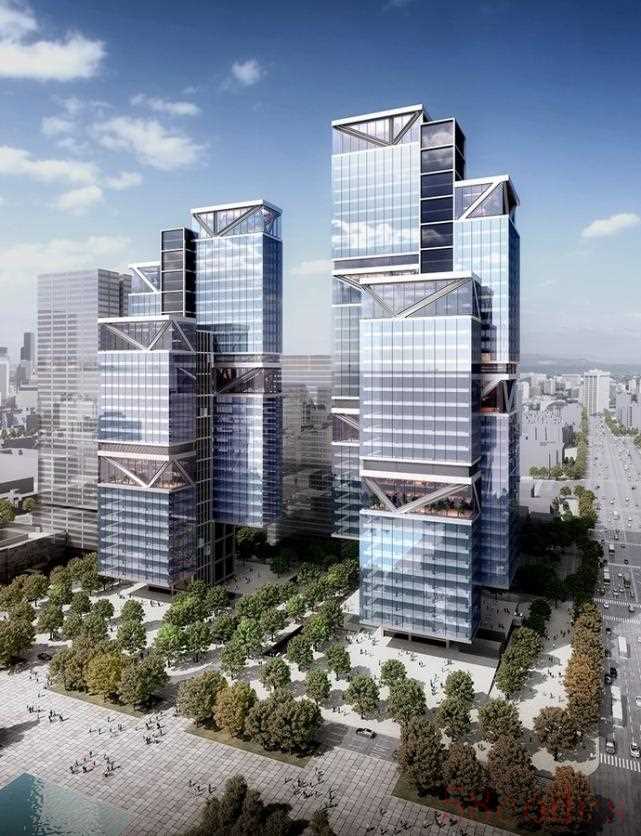 项目由国际知名设计团队Foster + Partners设计,造型极具艺术感。塔楼采用全钢结构,总用钢量5.5万吨,西塔高193.1米(43层),东塔高211.6米(47层)。