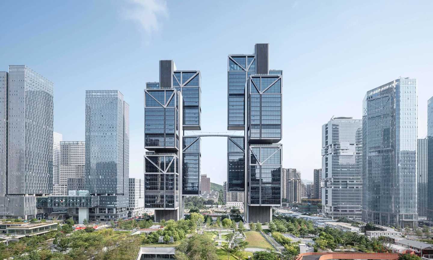 大疆表示,每栋塔楼依托核心筒,通过延伸出来的钢结构,分别向外悬挂了六个巨大的“玻璃体块”,东西两塔合计十二个“玻璃体块”错落有致,成就了独特的“非对称大悬挑”钢结构体系。高低错落的玻璃体块塑造了每个建筑立面的差异,形成不对称的美感;全钢结构外露,在夜晚,建筑的泛光设计强化了建筑的结构,将诚实简洁的美感展现地淋漓尽致。