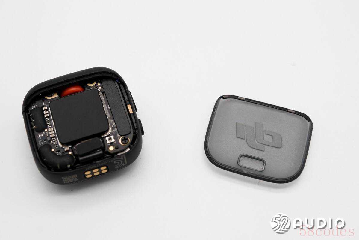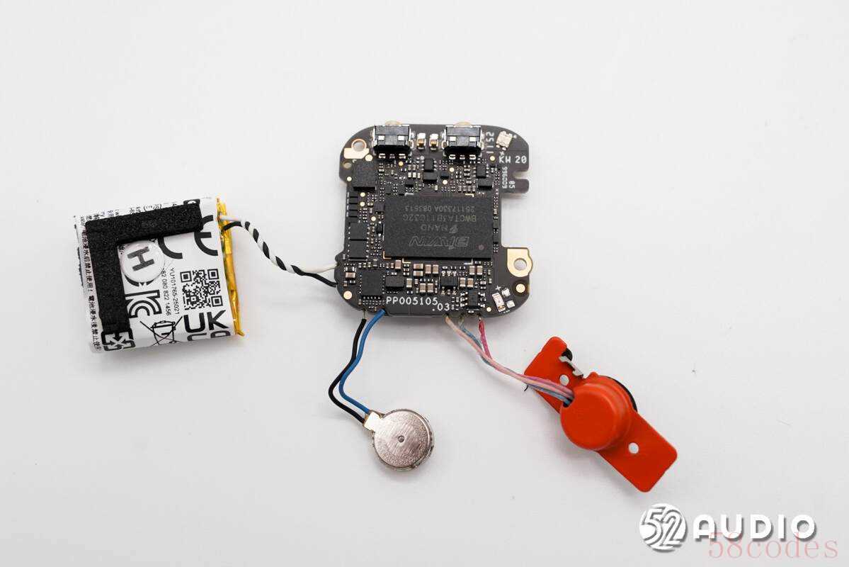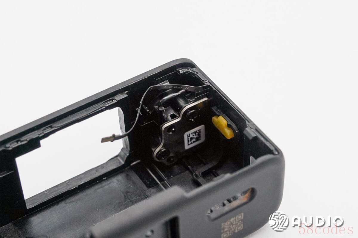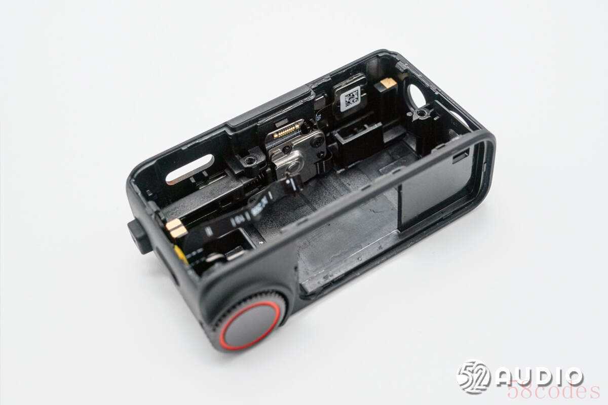 发射器内置振动马达特写,用于开关机、内录、静音、降噪等操控时提供振动反馈。