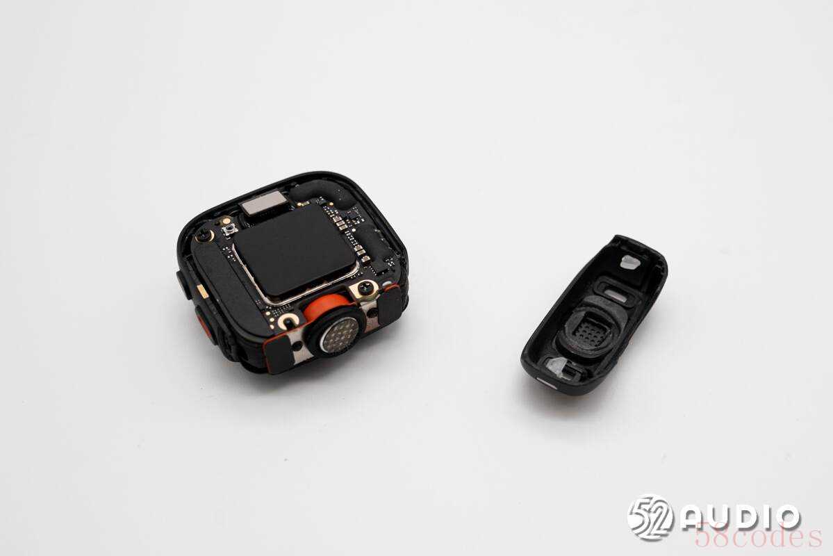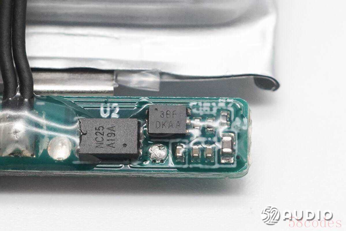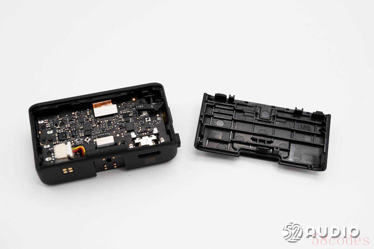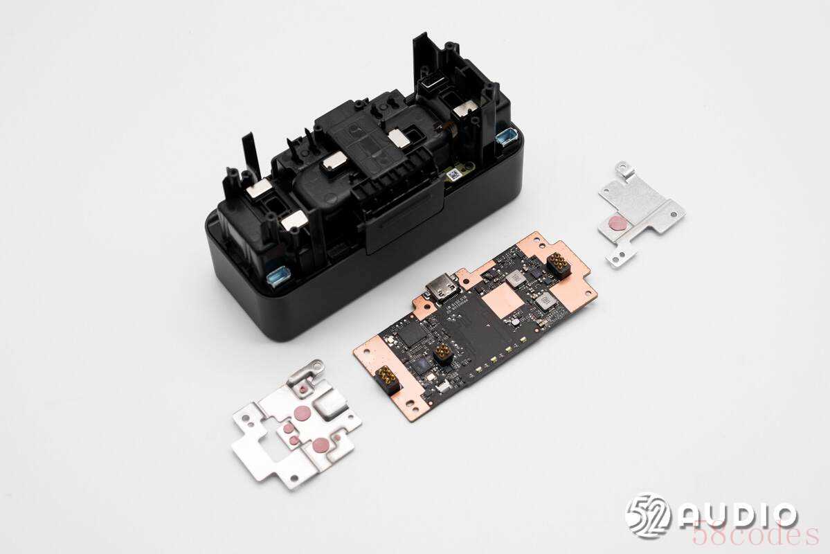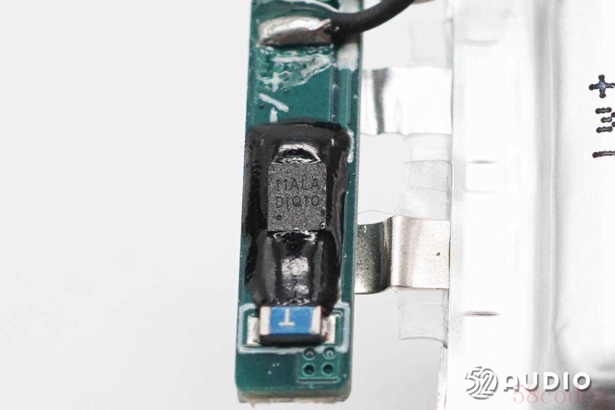 发射器内置振动马达特写,用于开关机、内录、静音、降噪等操控时提供振动反馈。