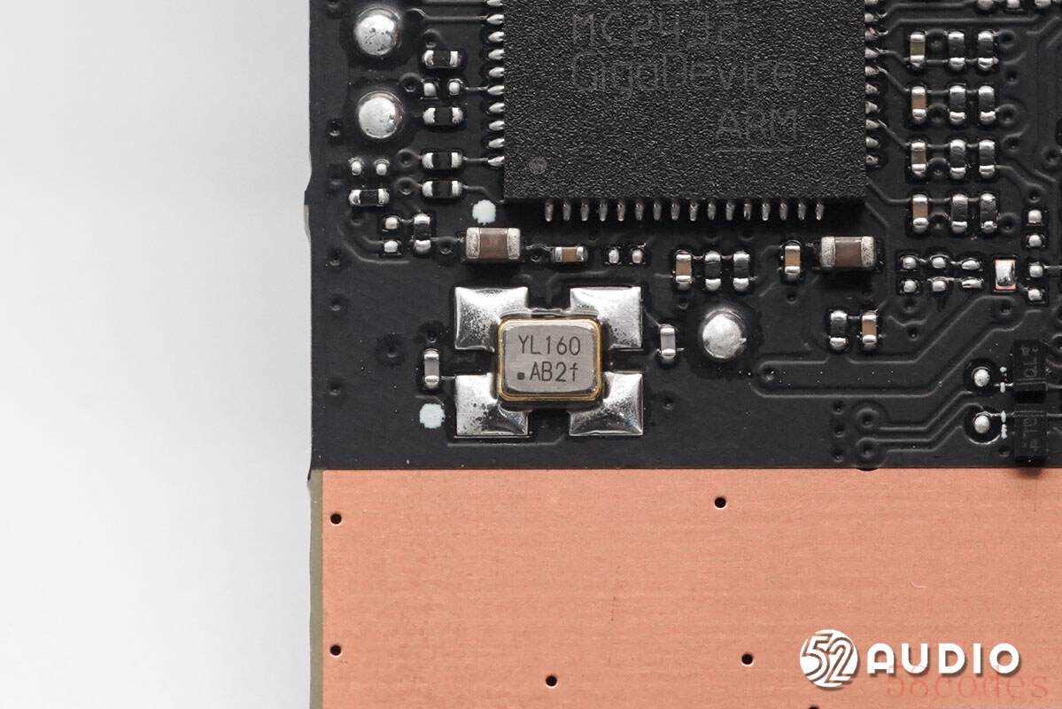 镭雕YL160的晶振特写,为微控制器提供时钟。