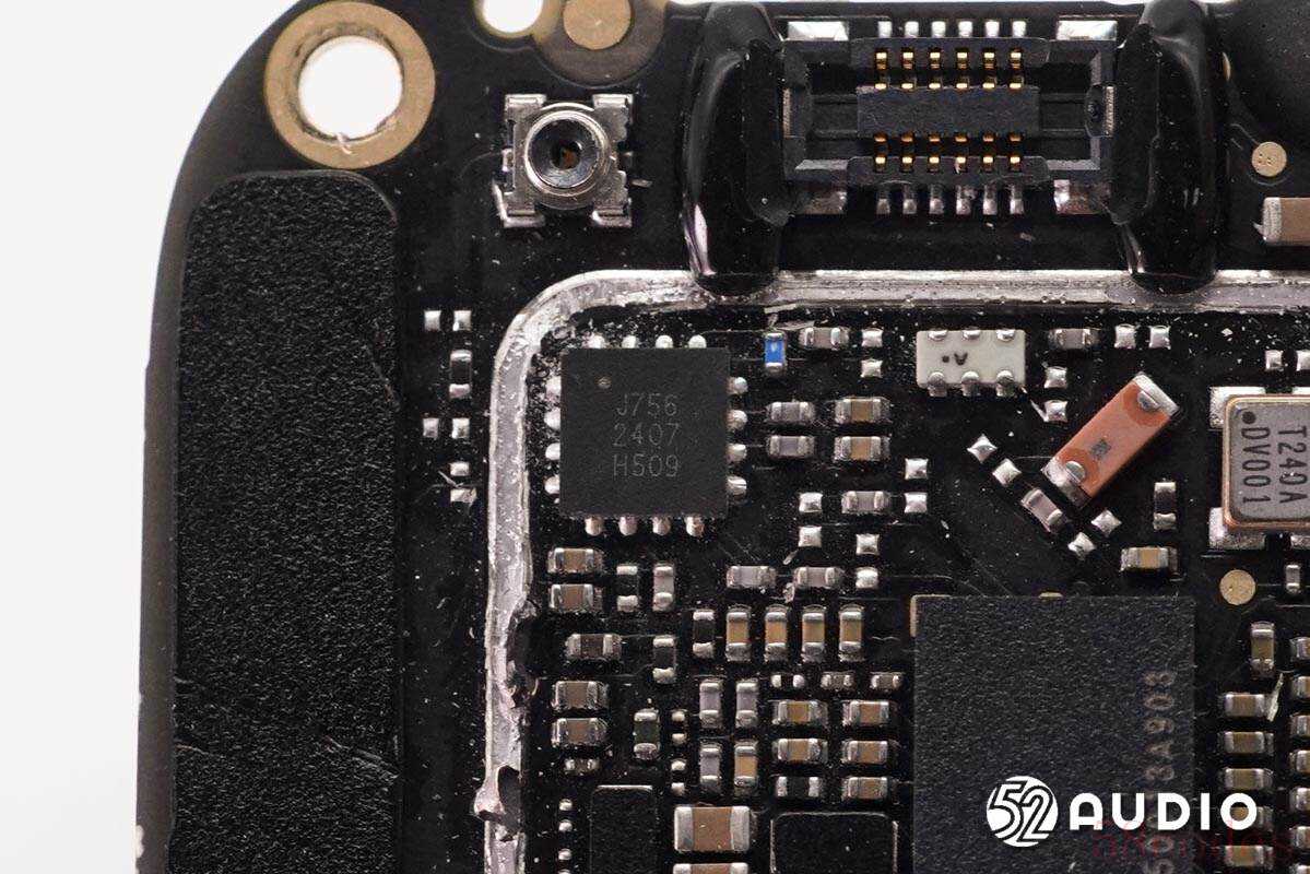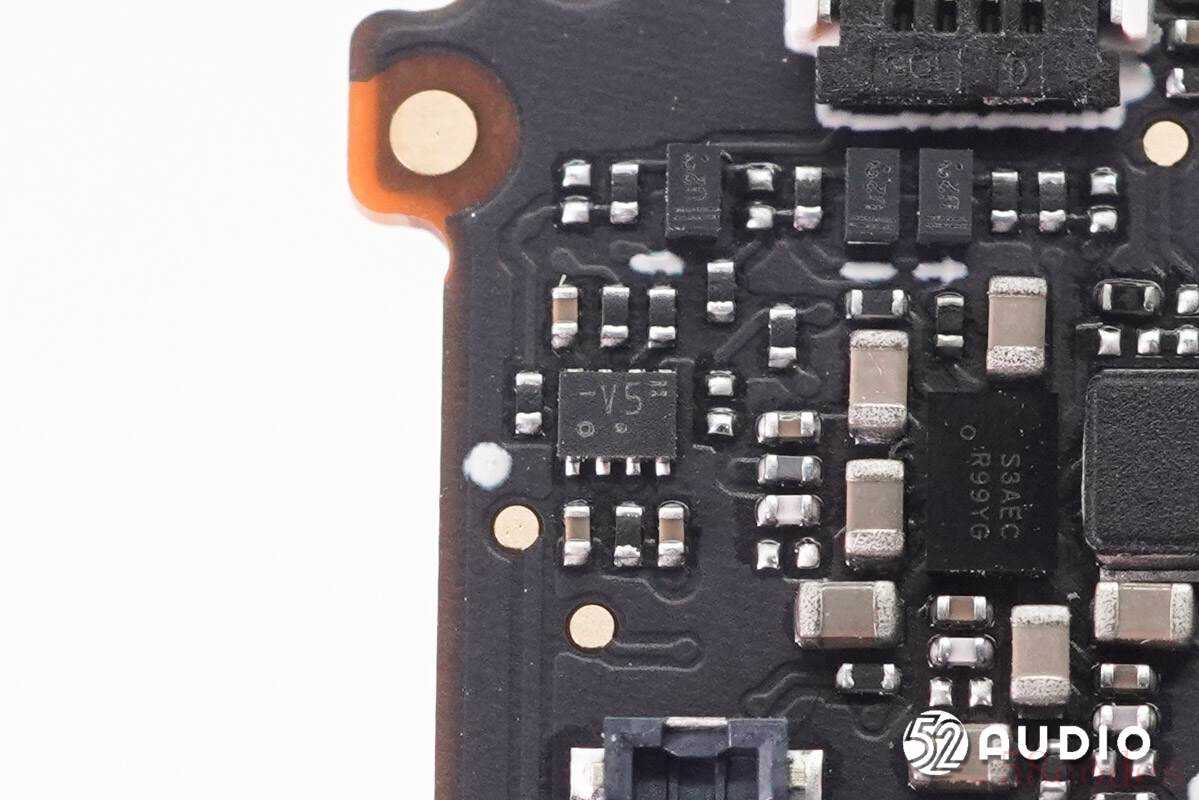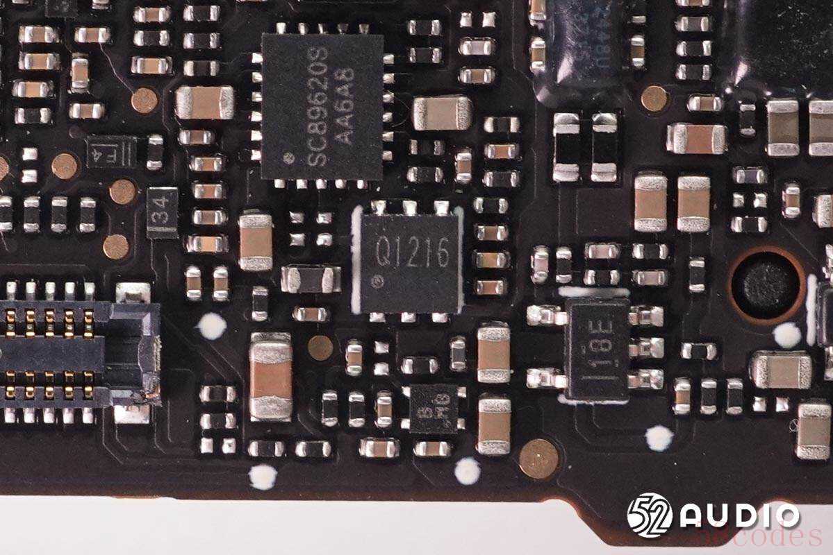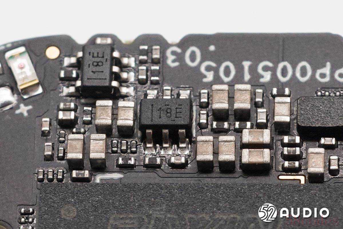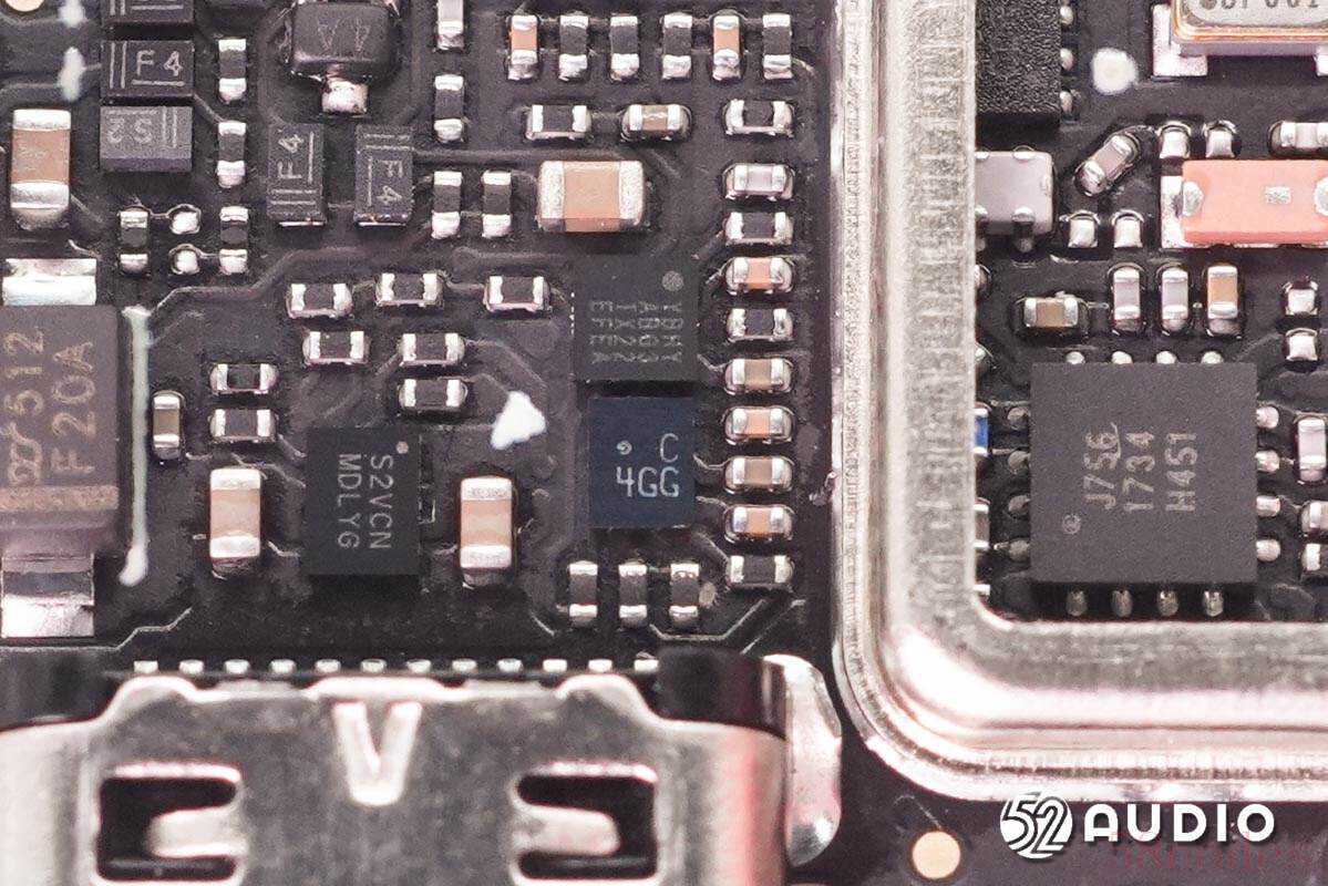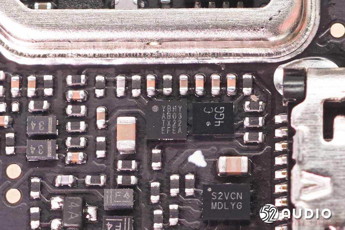 内部主要配置方面,充电盒搭载了豪鹏科技1950mAh/3.87V锂电池,配备了iCM创芯微CM1003-BFD锂电池保护IC。主板上,搭载了Southchip南芯SC89620S锂电池充电器,GigaDevice兆易创新GD32L233RCO6微控制器,WCH沁恒CH334 USB HUB控制器芯片,以及多颗YJ杨杰YJQ1216A PMOS等方案。
