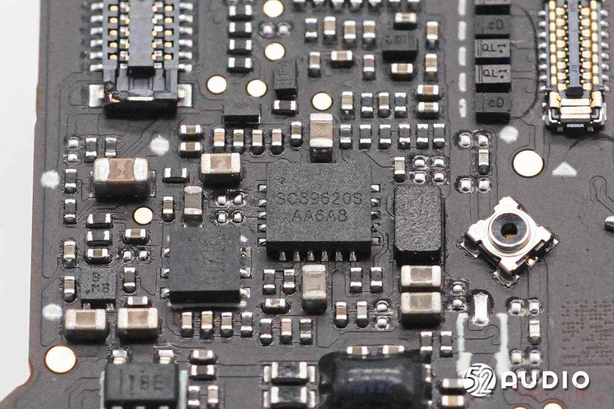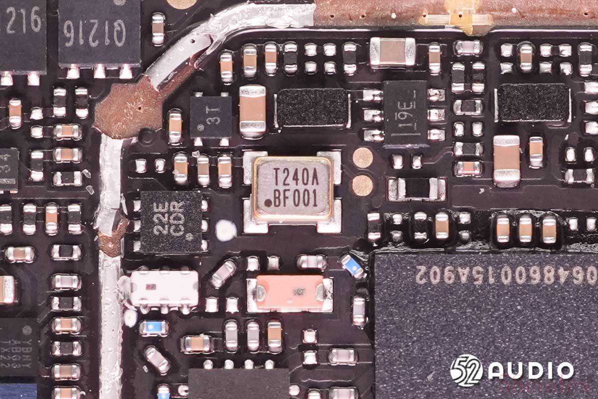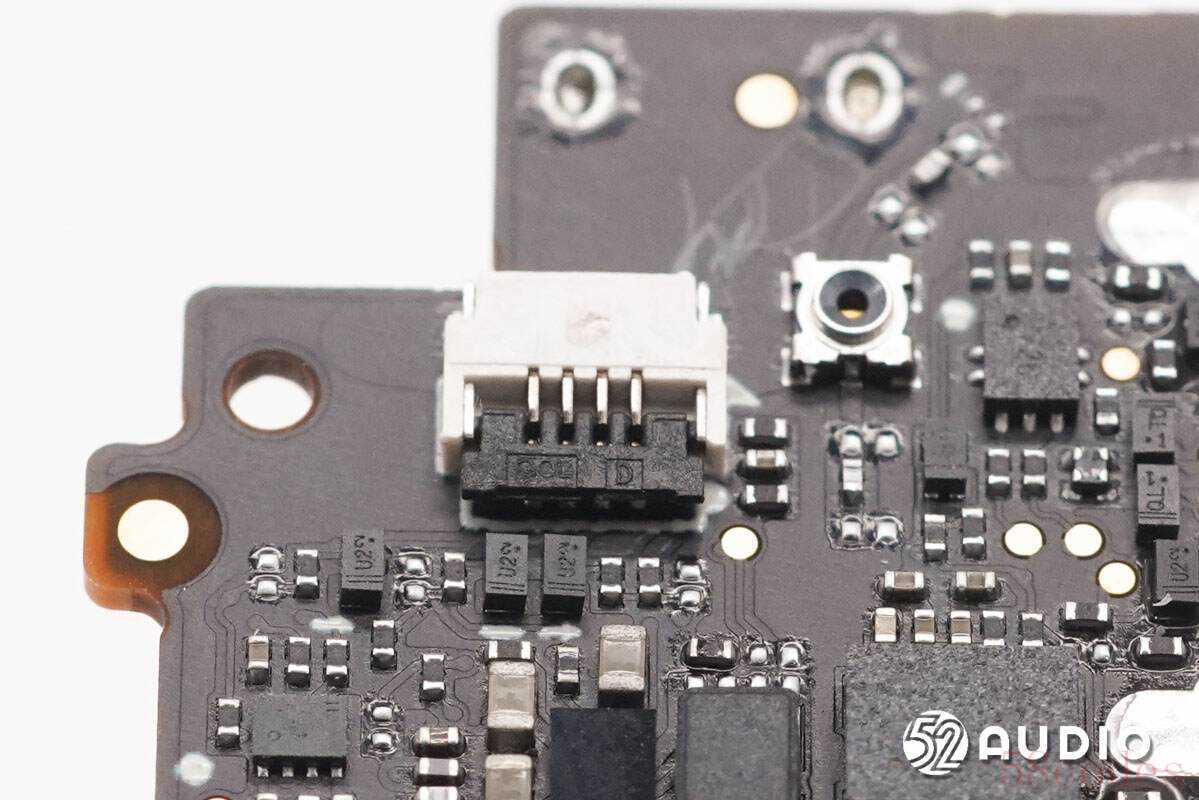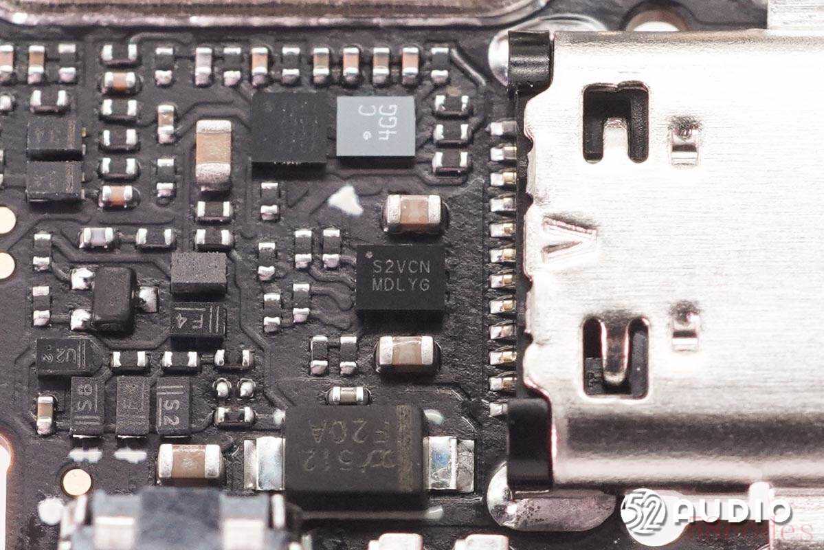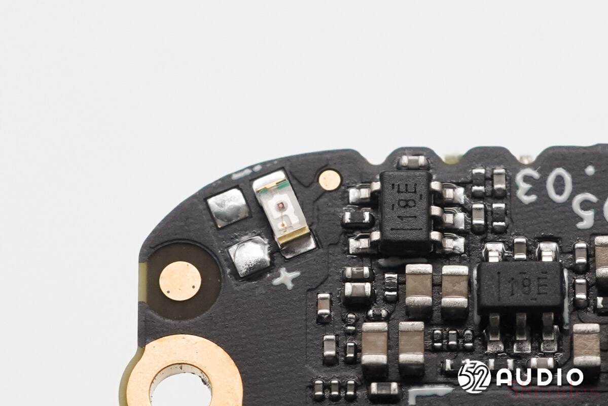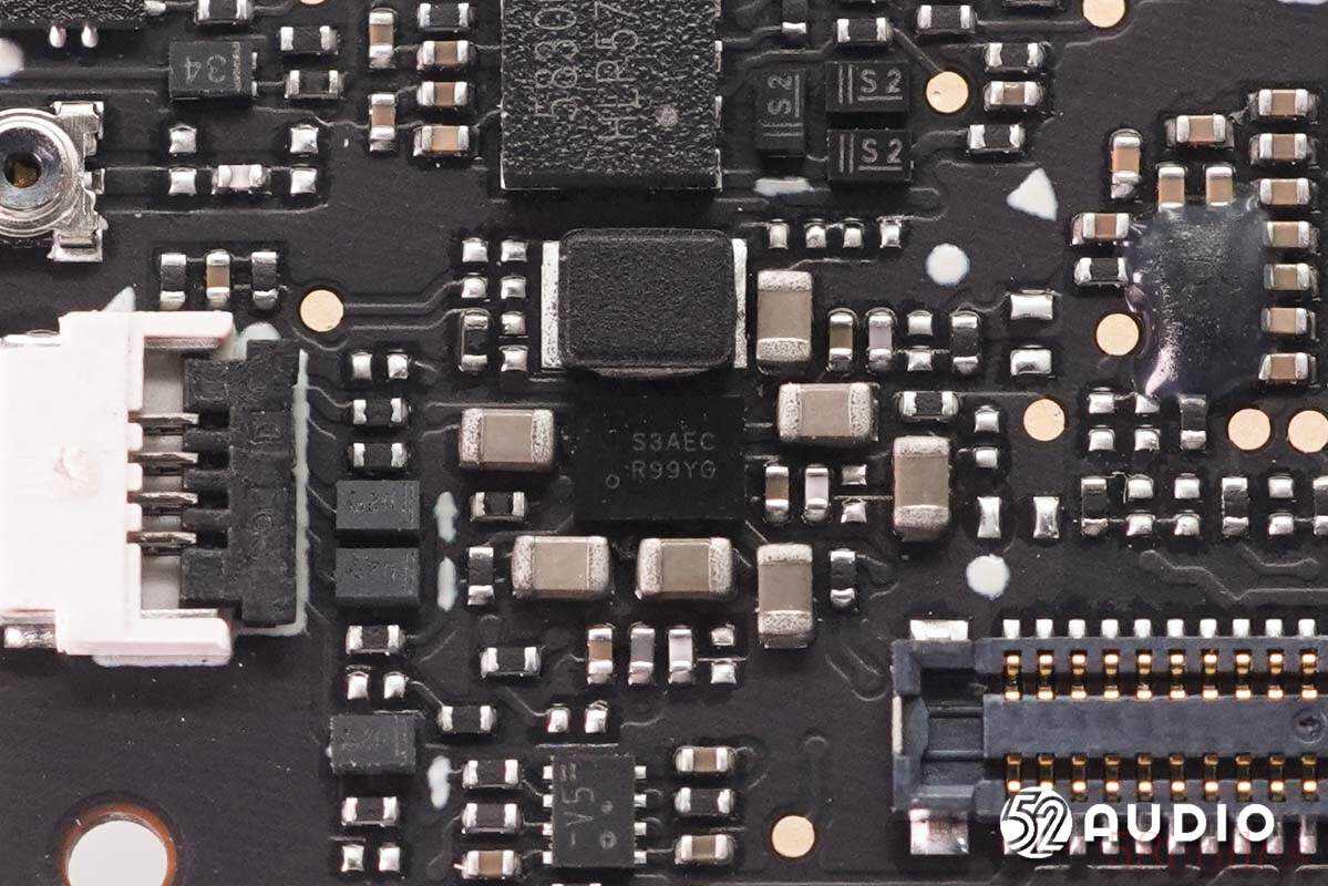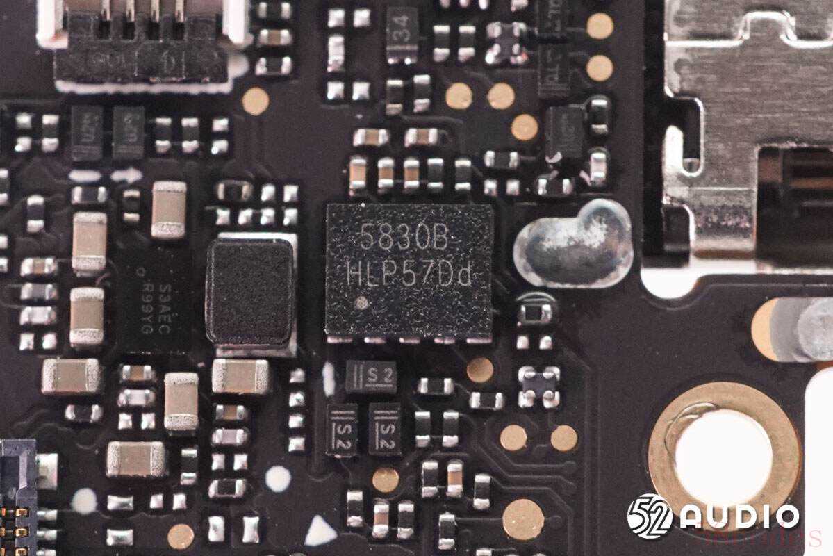 内部主要配置方面,充电盒搭载了豪鹏科技1950mAh/3.87V锂电池,配备了iCM创芯微CM1003-BFD锂电池保护IC。主板上,搭载了Southchip南芯SC89620S锂电池充电器,GigaDevice兆易创新GD32L233RCO6微控制器,WCH沁恒CH334 USB HUB控制器芯片,以及多颗YJ杨杰YJQ1216A PMOS等方案。