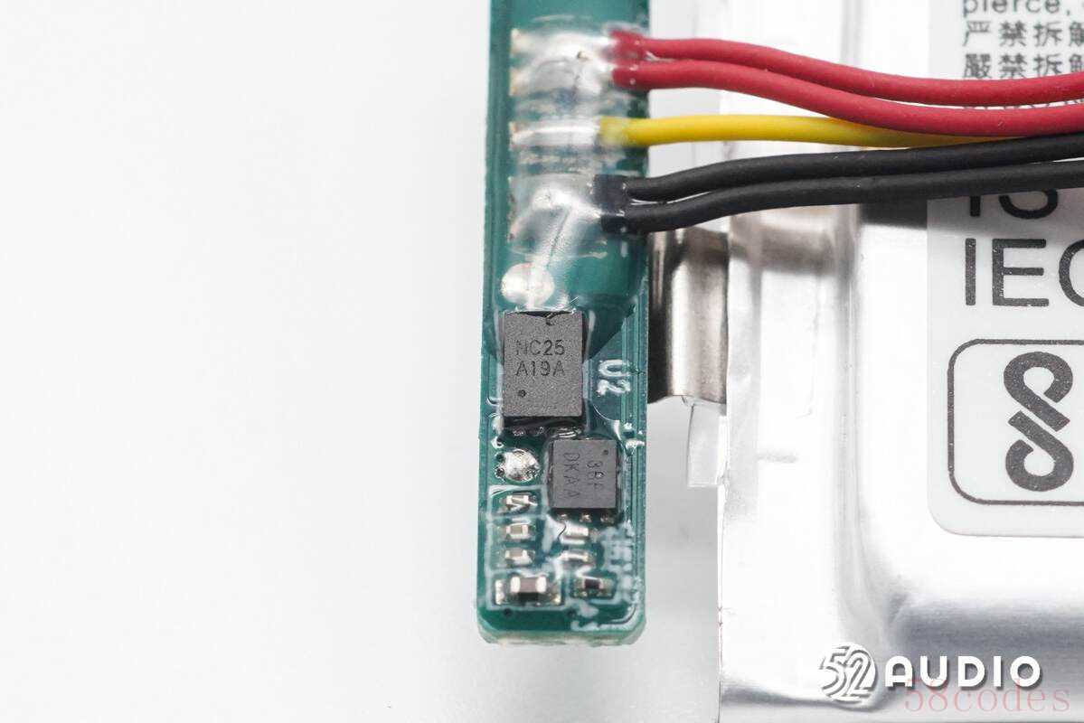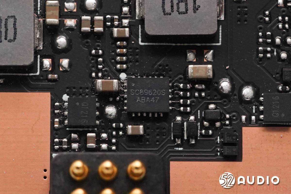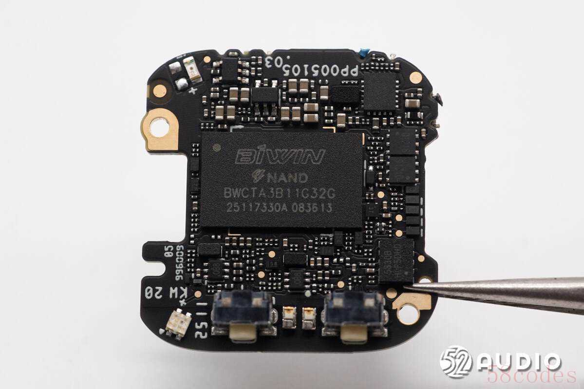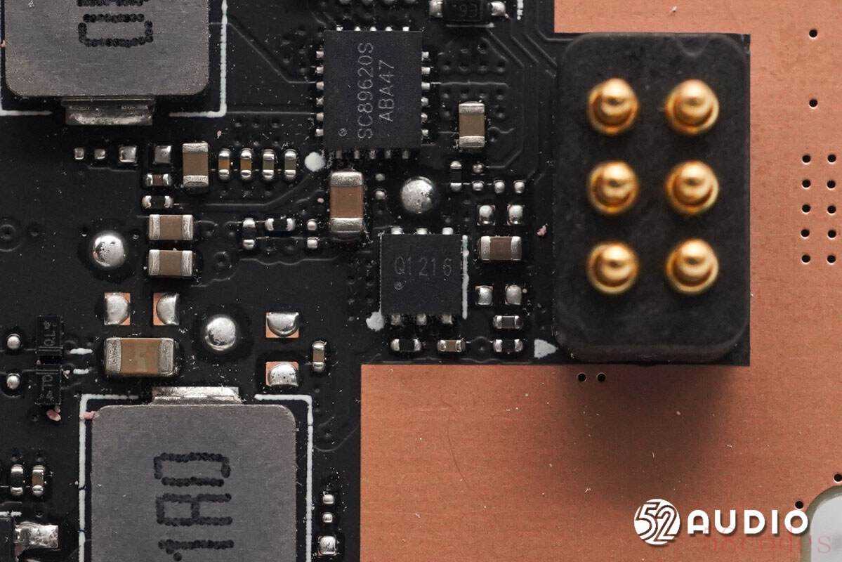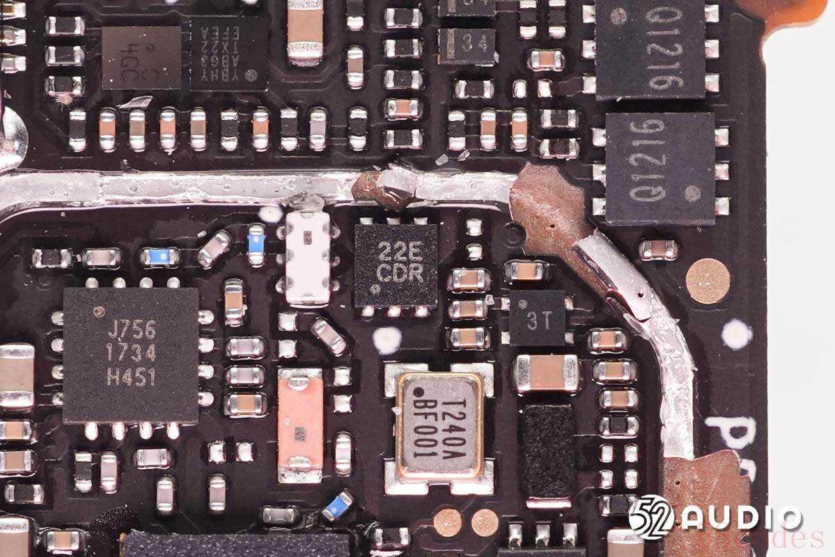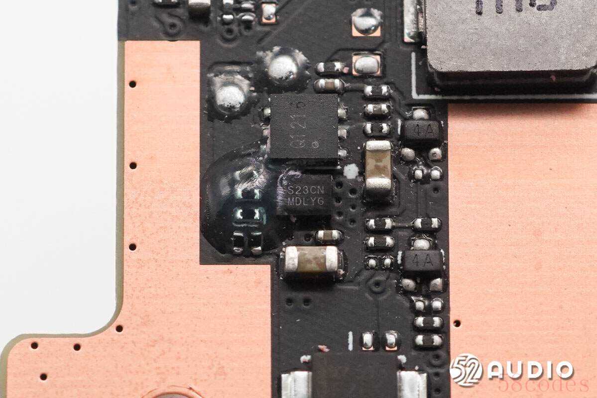 内部主要配置方面,充电盒搭载了豪鹏科技1950mAh/3.87V锂电池,配备了iCM创芯微CM1003-BFD锂电池保护IC。主板上,搭载了Southchip南芯SC89620S锂电池充电器,GigaDevice兆易创新GD32L233RCO6微控制器,WCH沁恒CH334 USB HUB控制器芯片,以及多颗YJ杨杰YJQ1216A PMOS等方案。
