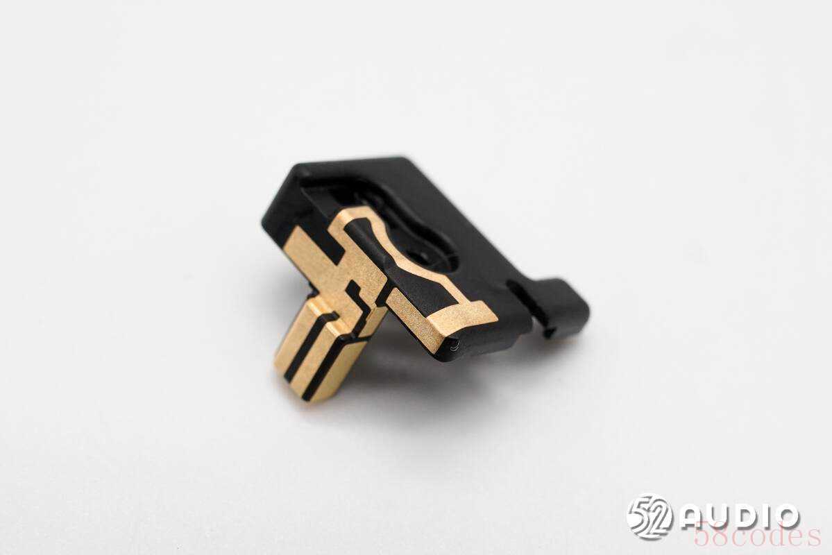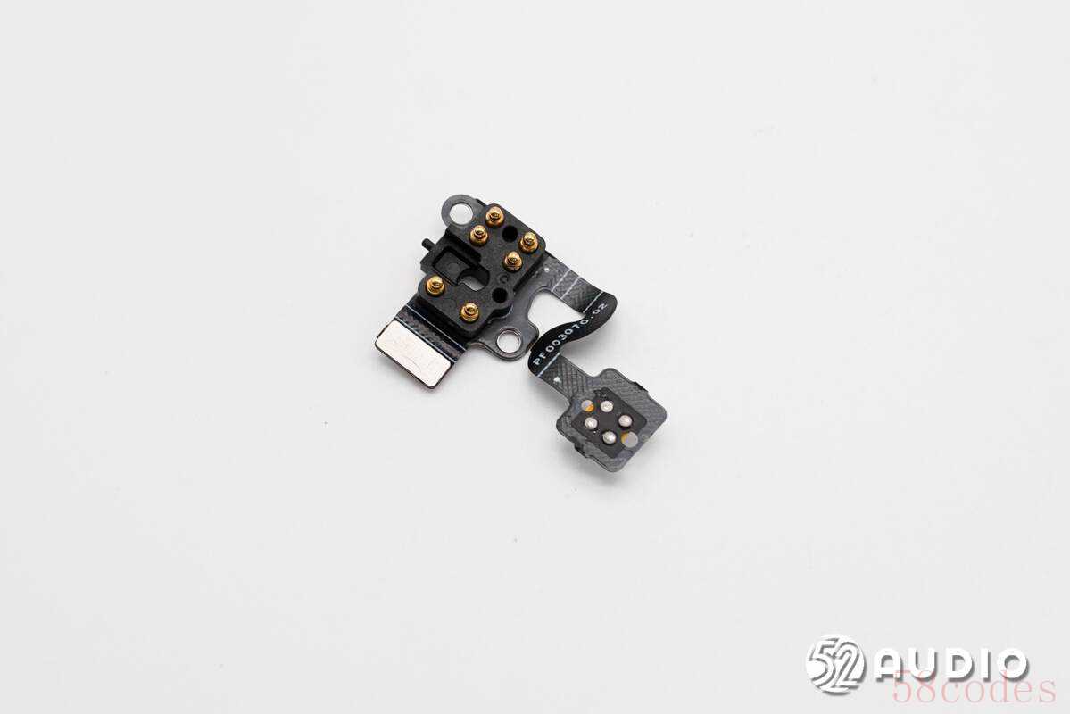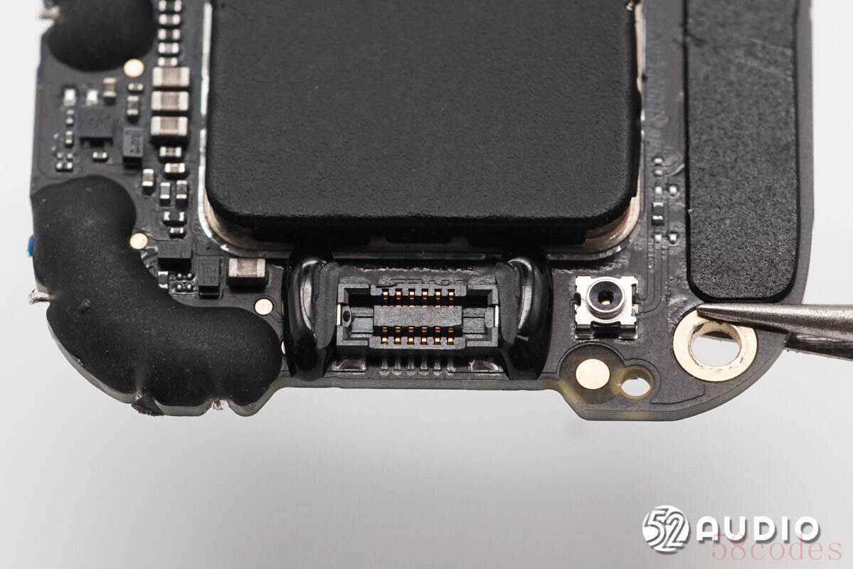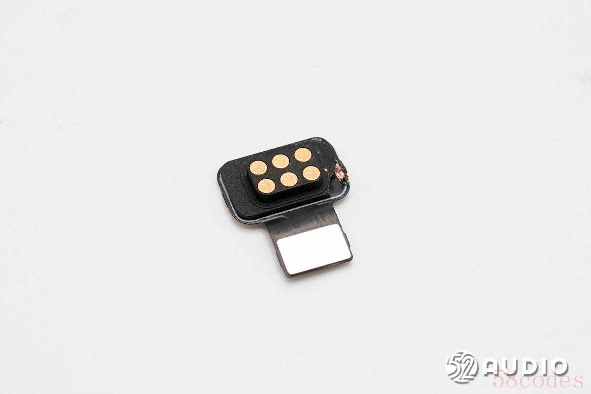 拆掉保护盖,下方设置6颗金属顶针,以及一个定位柱,防止使用时连接头滑动。