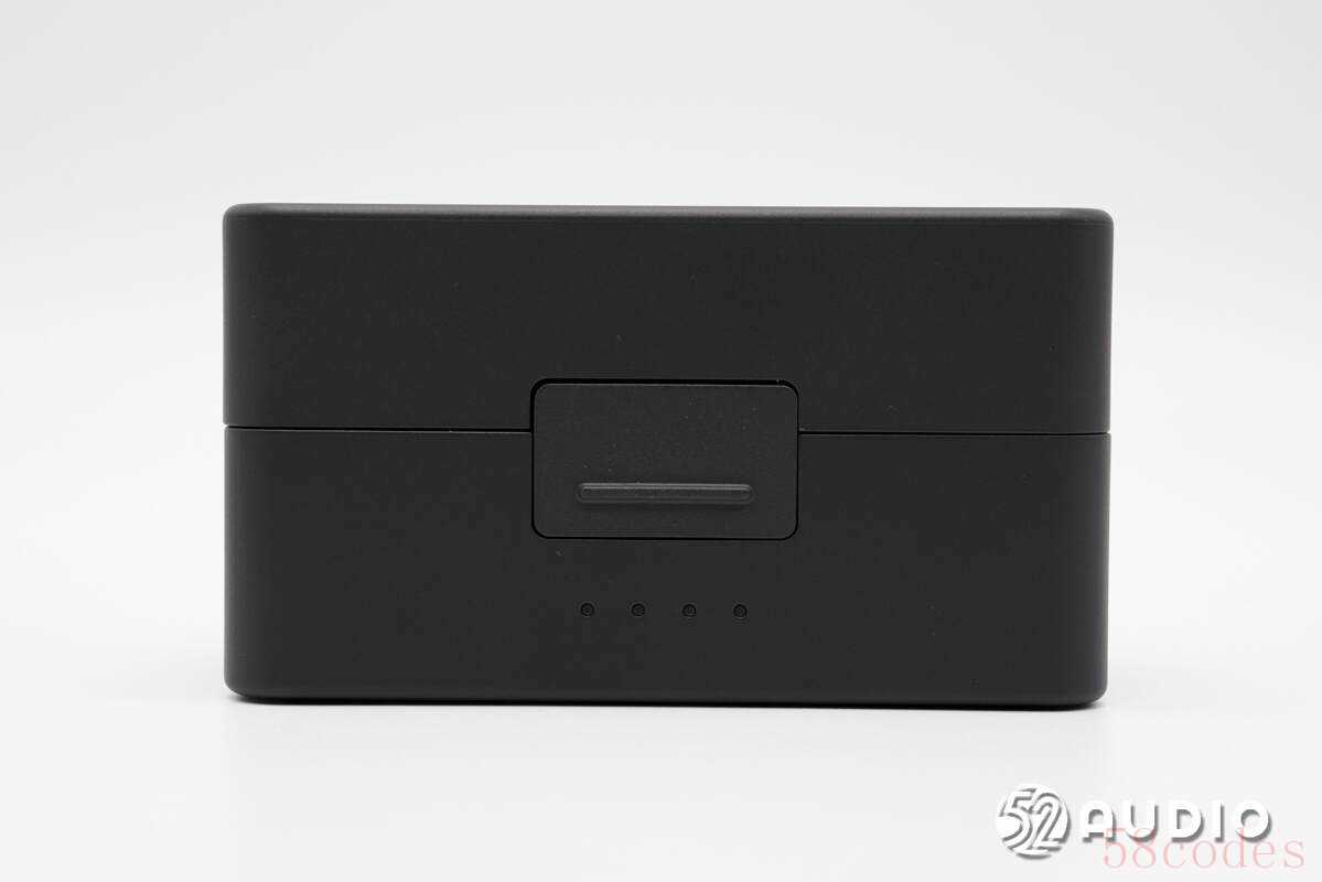大疆DJI Mic 3无线麦克风充电盒延续了家族式的方形设计,磨砂质感,通过磁吸和卡扣两种方式固定。机身正面设置有4颗指示灯,用于反馈剩余电量信息。
