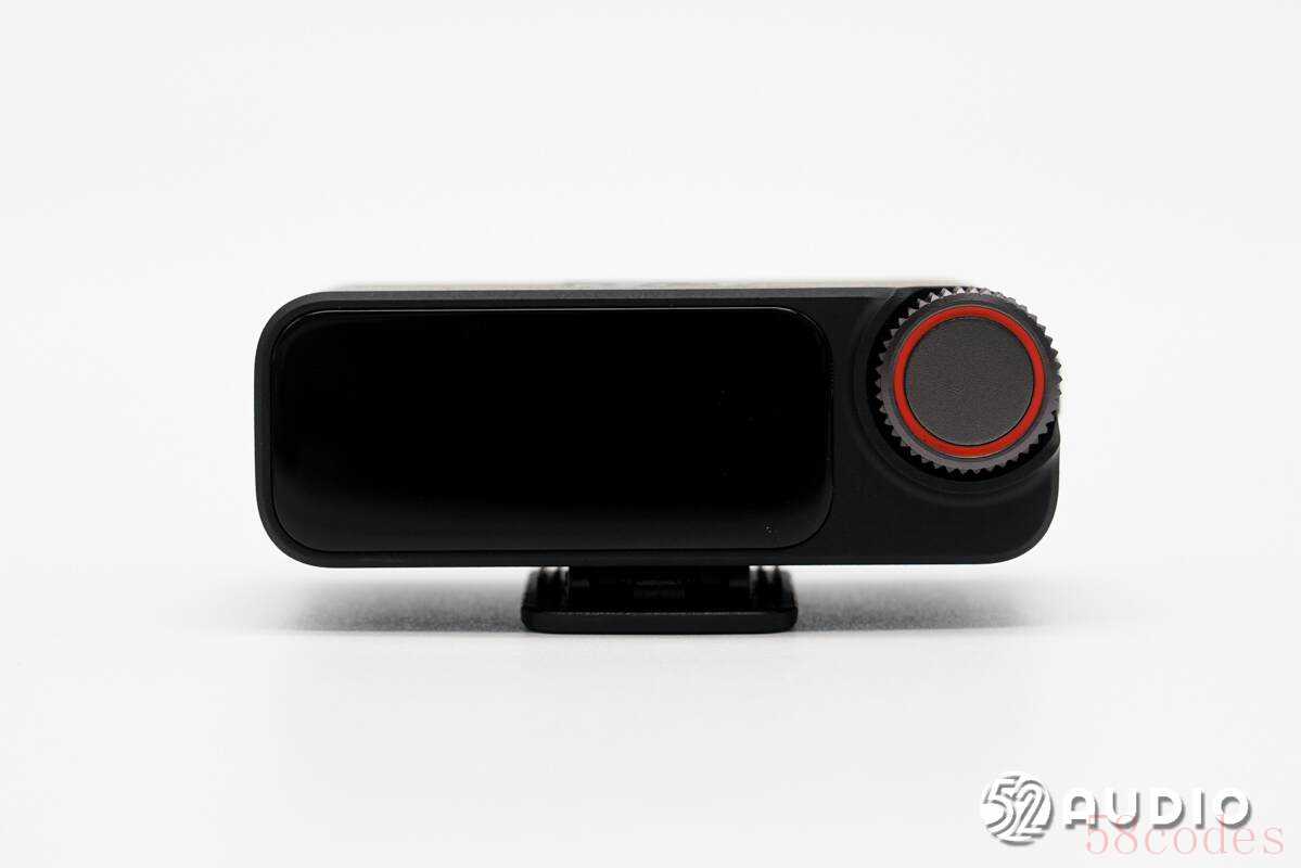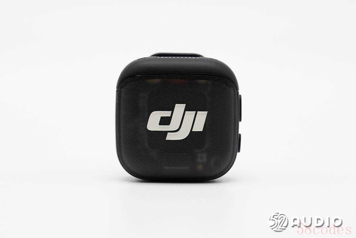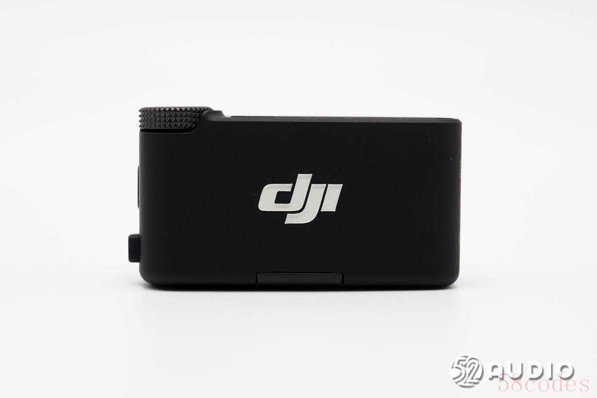 DJI Mic 3发射器延续了上代的专业设计风格,机身正面设计有“DJI”品牌LOGO。左上角设置有拨轮,可用于增益和屏幕选项控制。